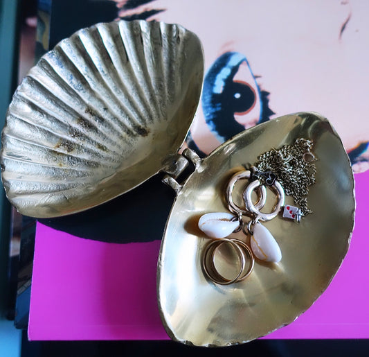 Sold outHinged brass clam shell trinket box
