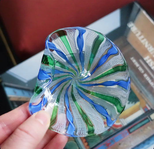Green & white Zanfirico Murano glass trinket dish