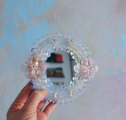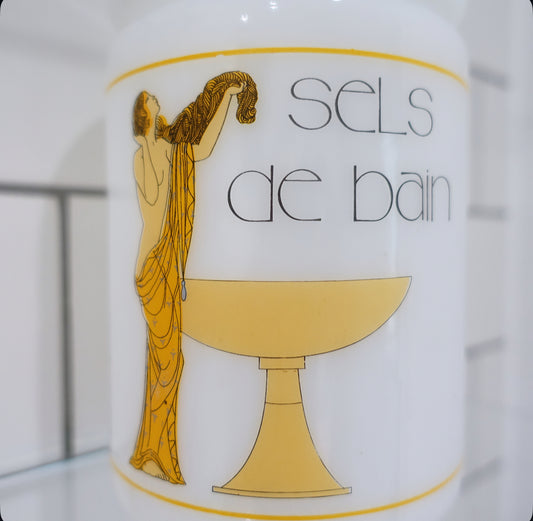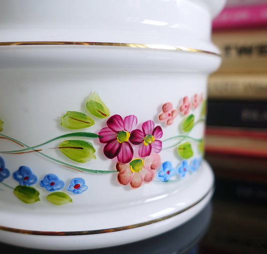 Opaline glass vanity jar with hand painted enamel floral detailing