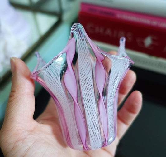 Pink & white Zanfirico Murano glass trinket dish