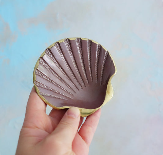 Pink enamel and brass scallop shell
