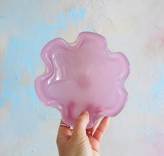 Sold outPink Murano glass flower bowl