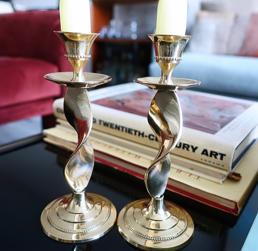 Sold outPair of Wavy Brass Candlesticks