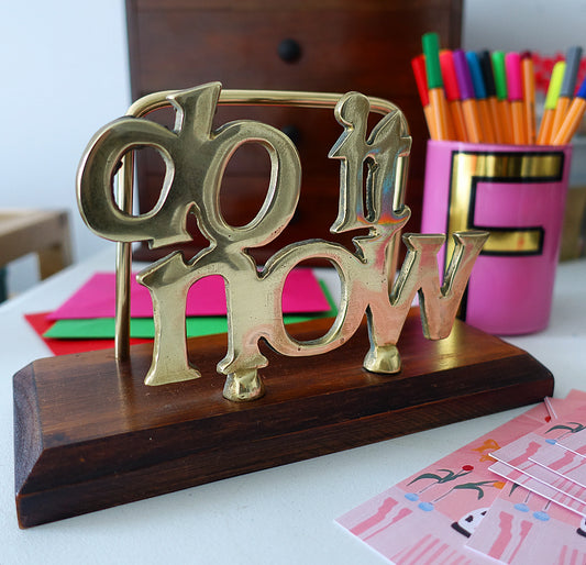 ‘Do it now’ brass & wood letter holder