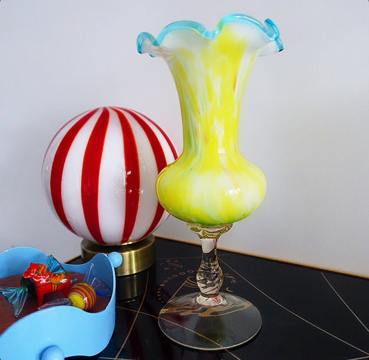 Sold outYellow splatter glass vase
