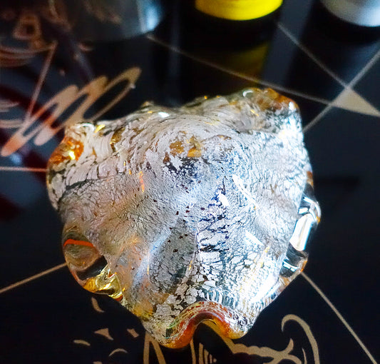 Yellow Murano glass trinket dish with silver leaf inclusions