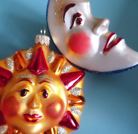 Pair of vintage celestial glass baubles