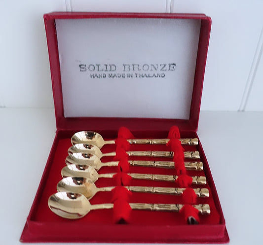 Sold outSet of six Thai bronze bamboo spoons