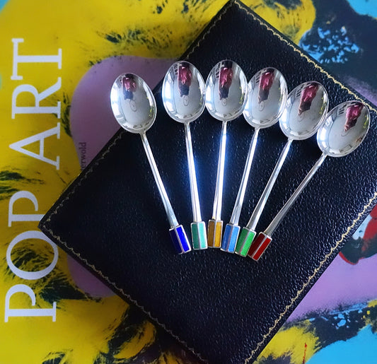 Silver Hallmarked & Rainbow Enamel Spoon Set