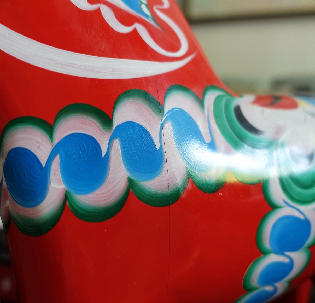 Vintage XL Swedish folk art wooden Dala Horse with hand painted detailing, c.1980s