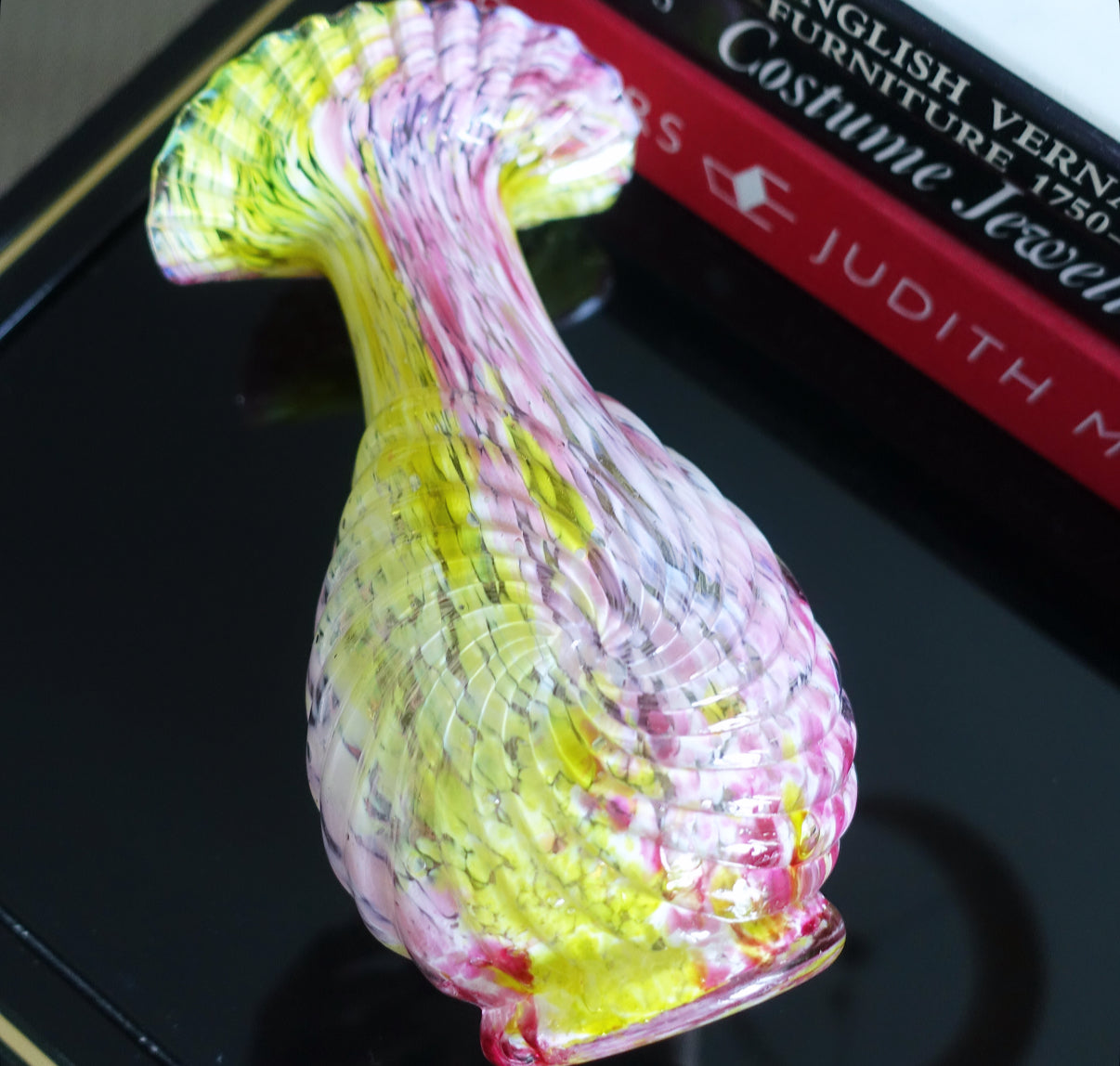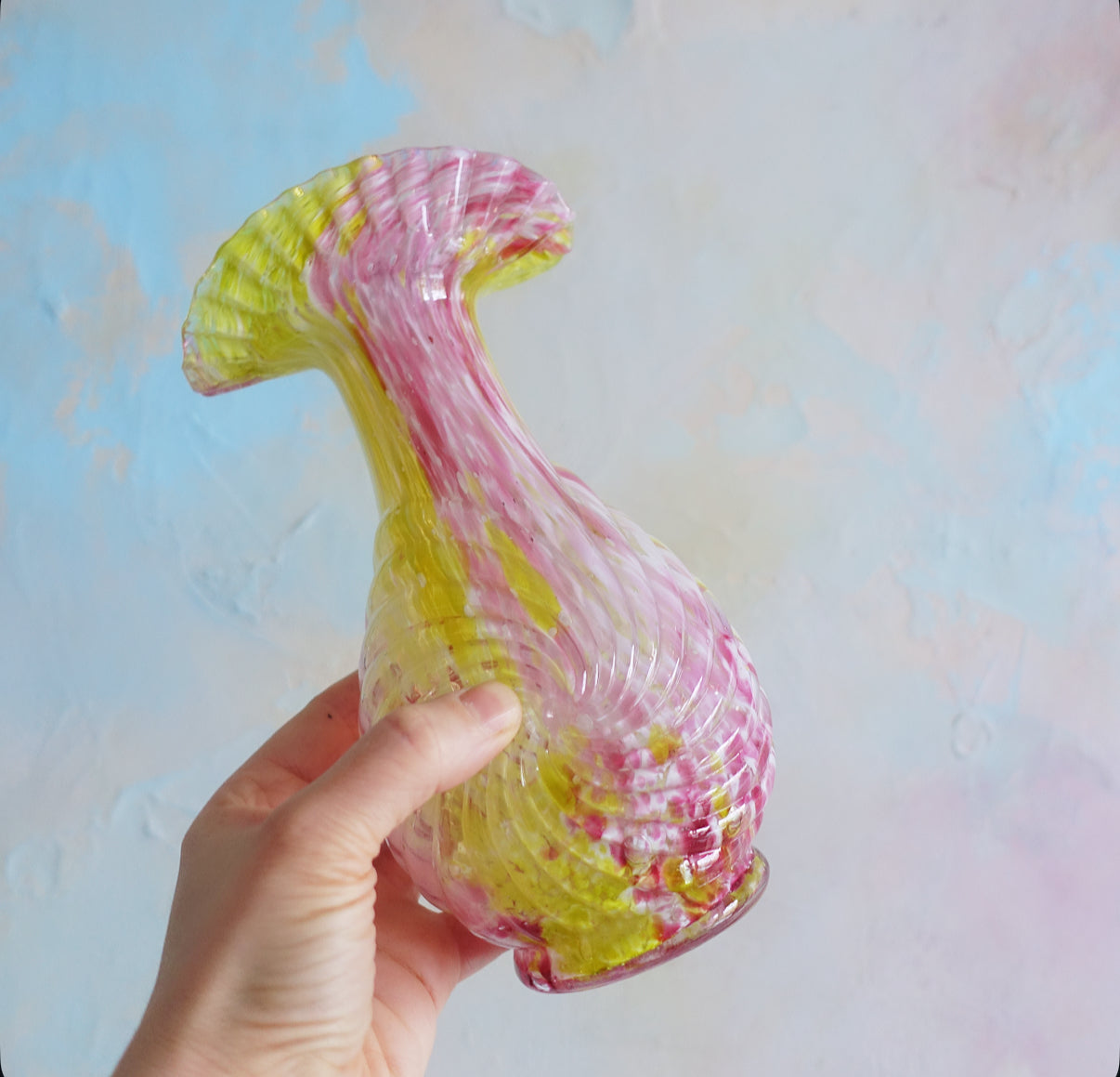 Antique pink, yellow & white splatter glass ‘Soleil’ vase by Legras France, c.1890s