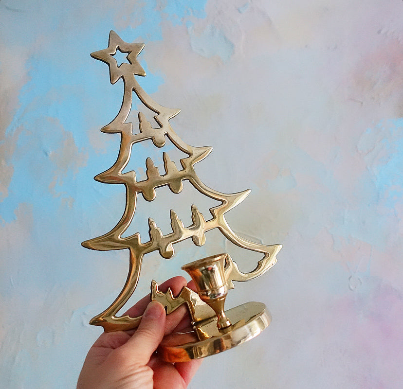 Brass Christmas tree candle holder