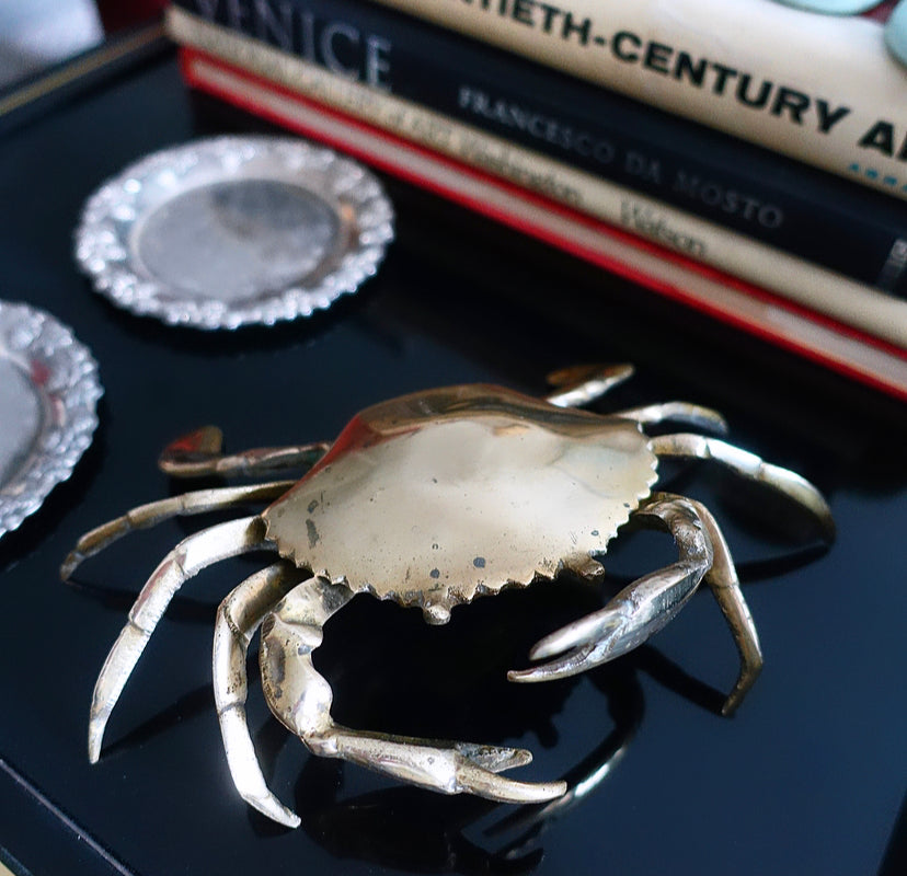 Vintage decorative brass crab ashtray c.1970s/80s,