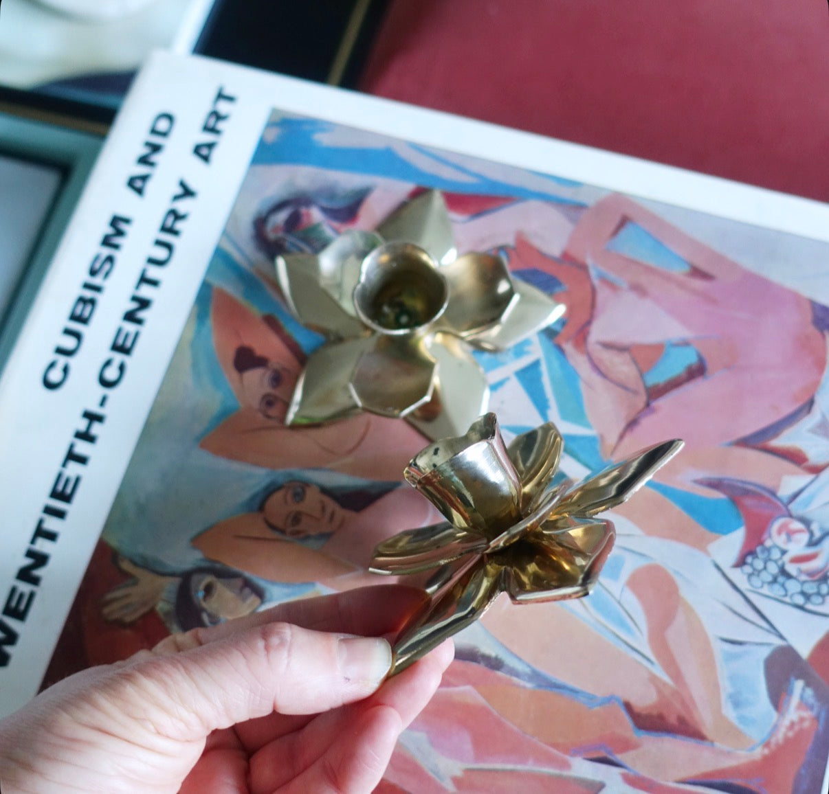 Pair of vintage brass flower candle holders, c.1970s/80s