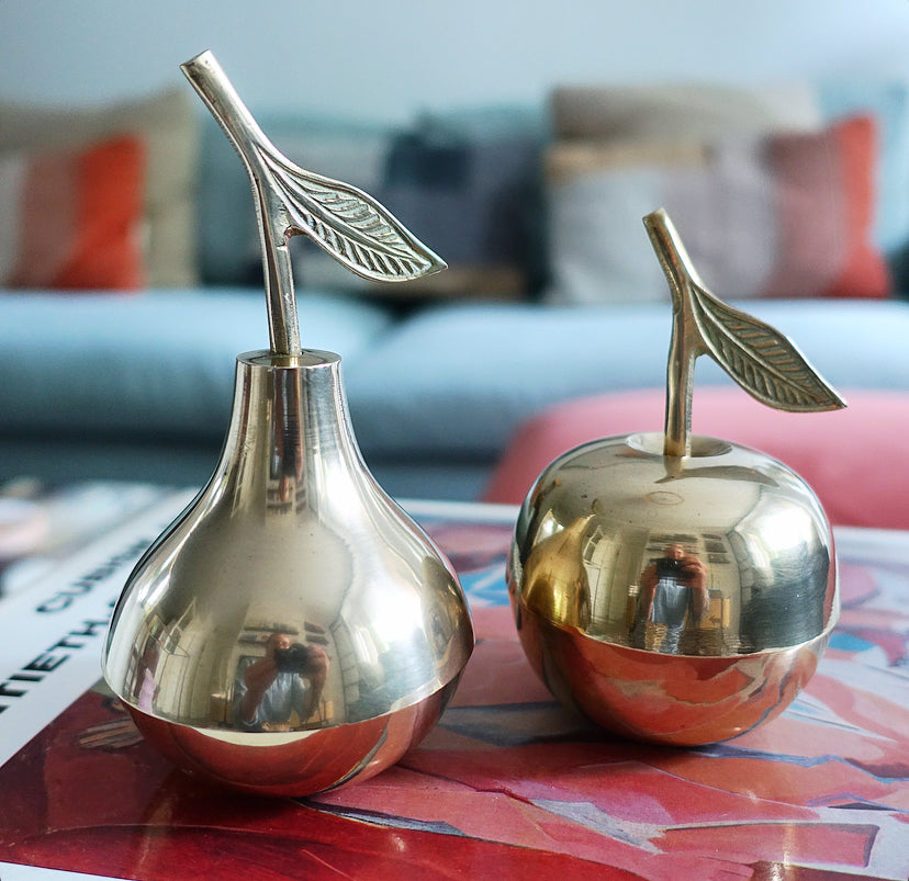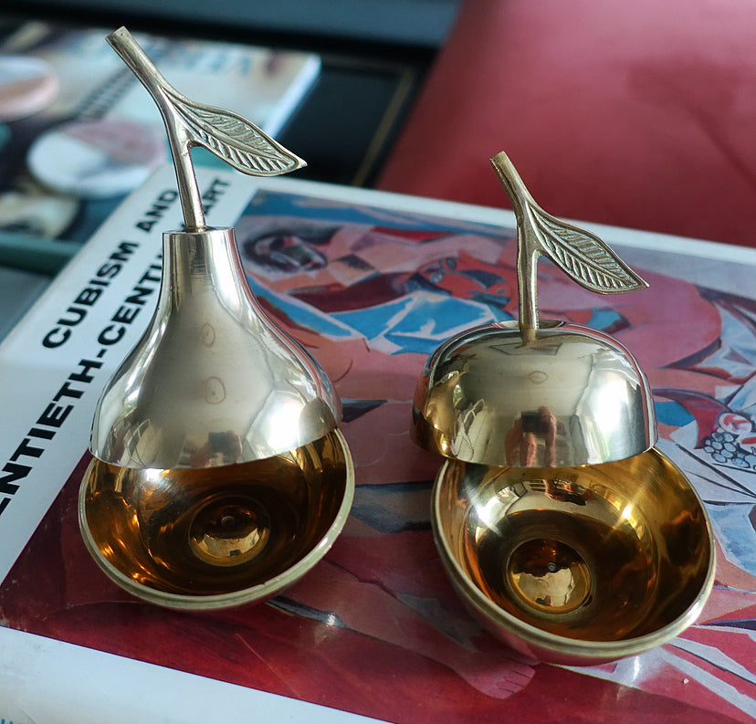 Brass fruit trinket pot set