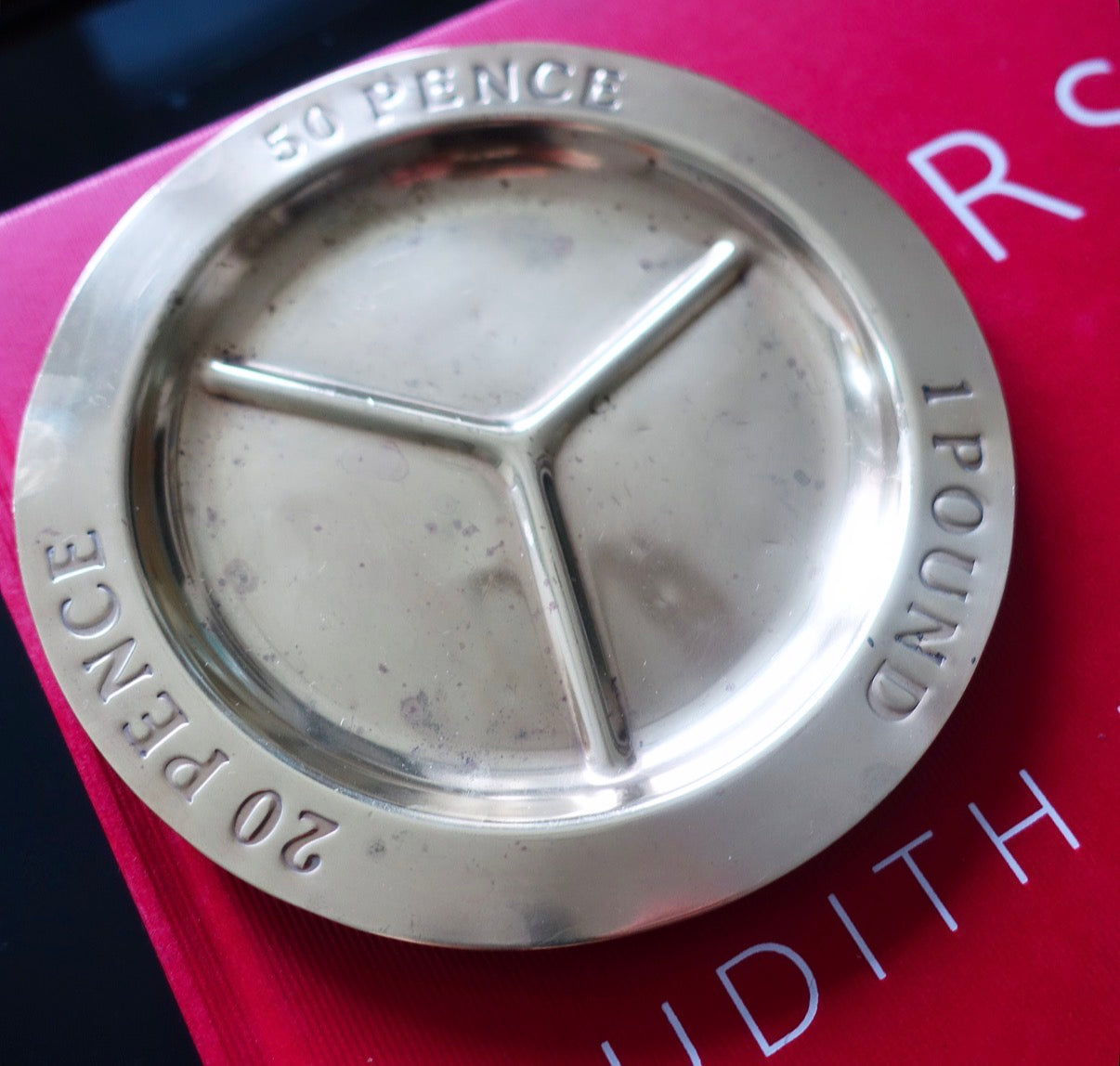Vintage brass pocket change dish with sections, c.1980s/90s