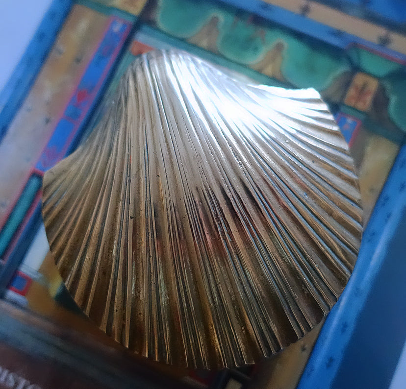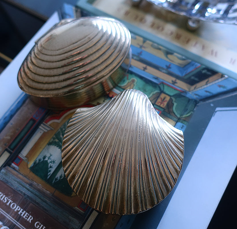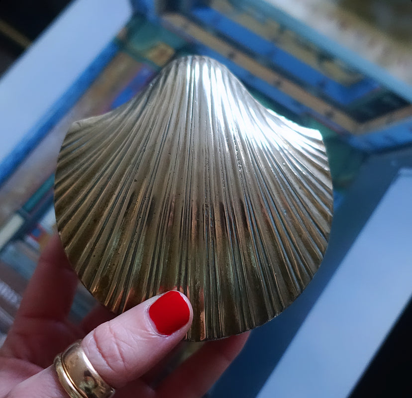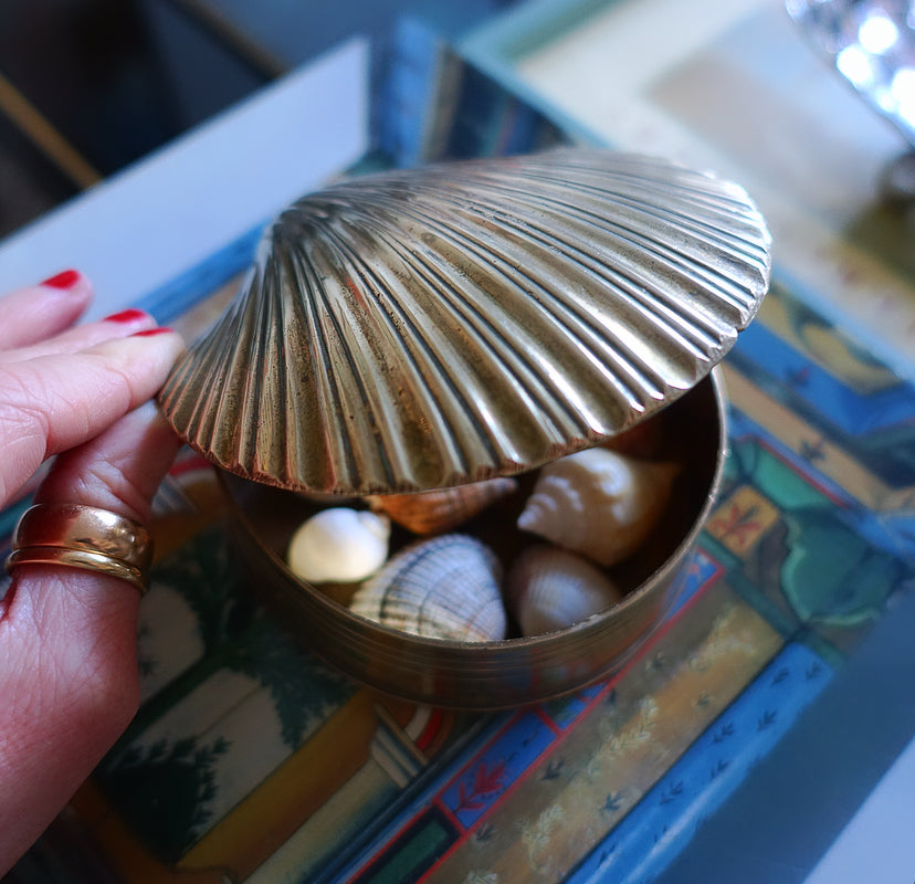 Vintage brass hinged scalloped shell trinket box, c.1970s/1980s.