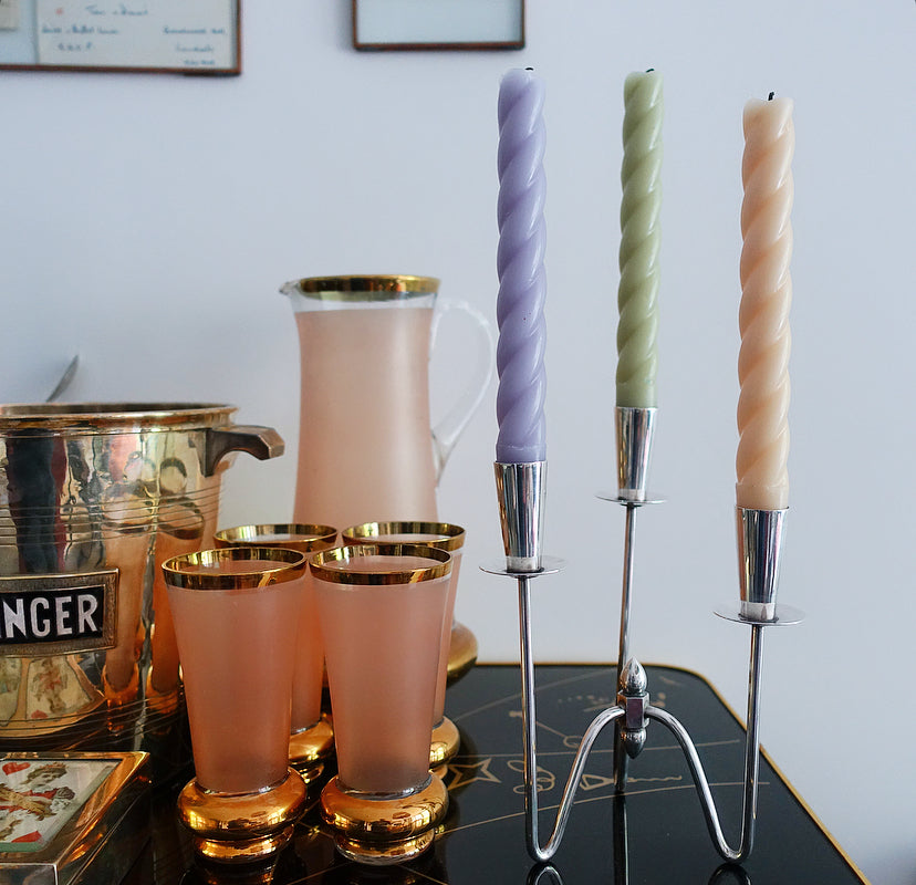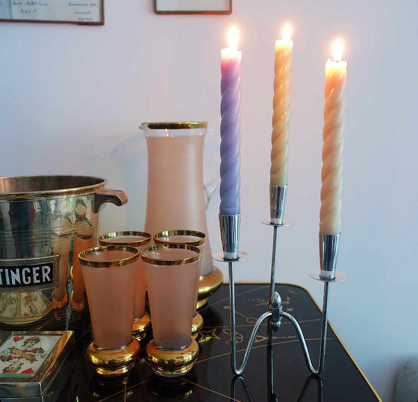 13 x 21 h cms, holds regular dinner candles (2cms diameter)