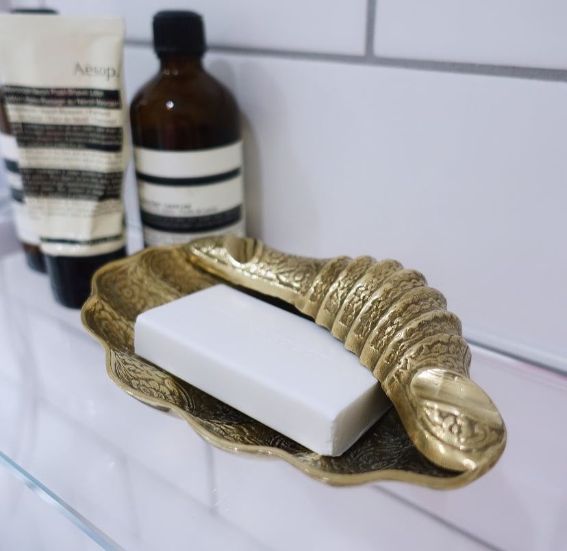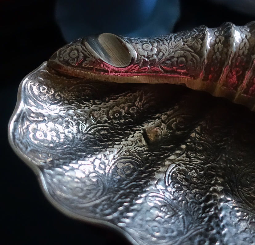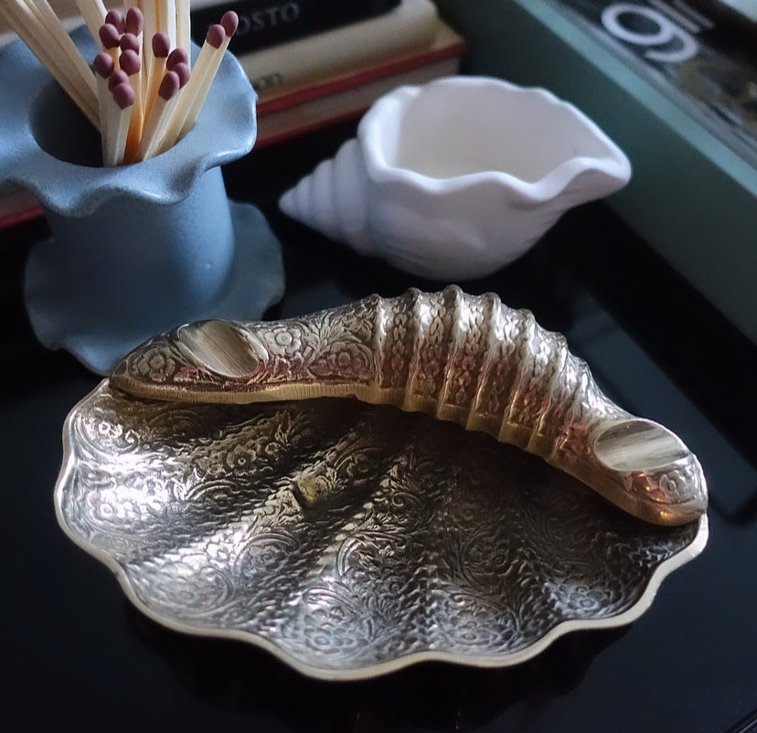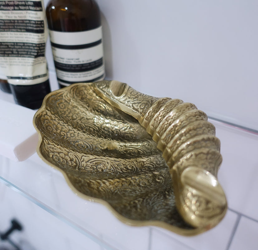 Engraved decorative brass shell dish