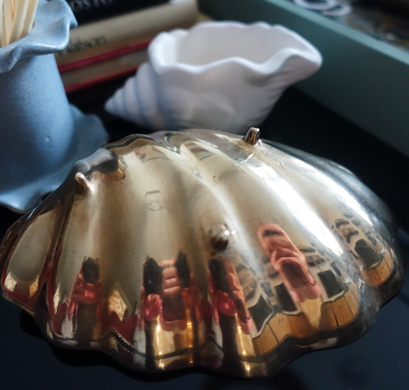 Pretty vintage engraved brass shell dish, c.1970s/80s