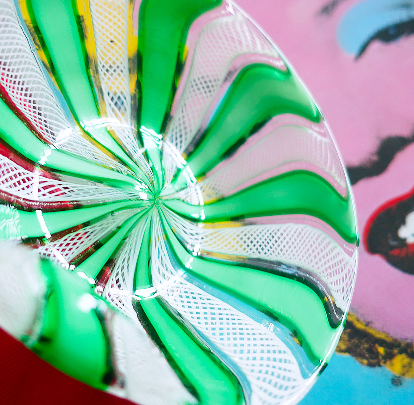 Delicate Mid-Century green and white Zanfirico Murano glass trinket dish., c.1950s/60s