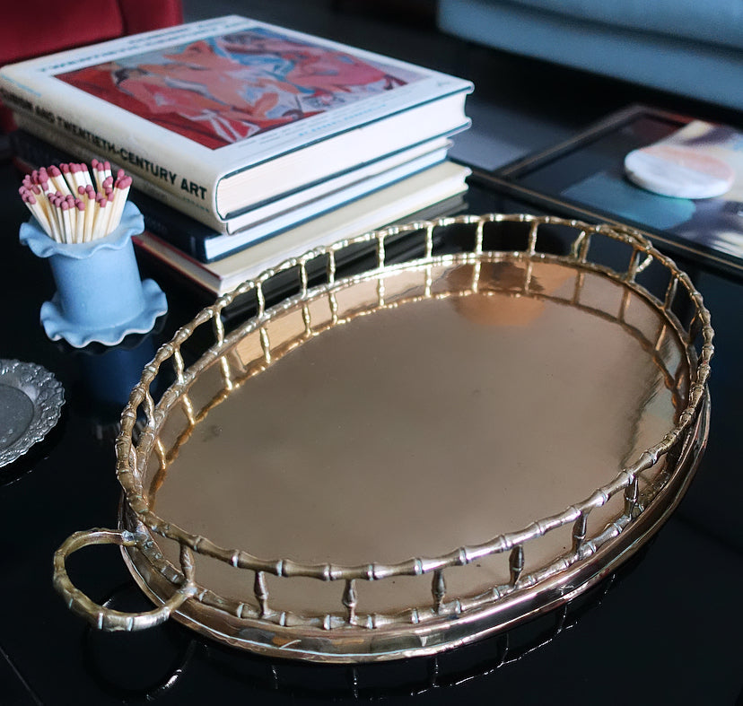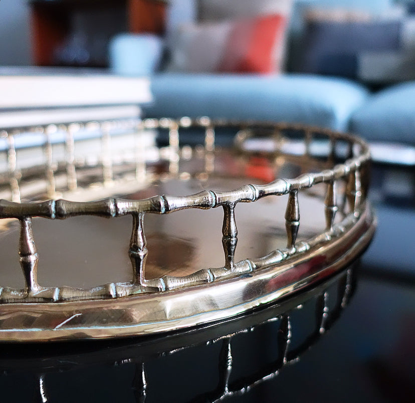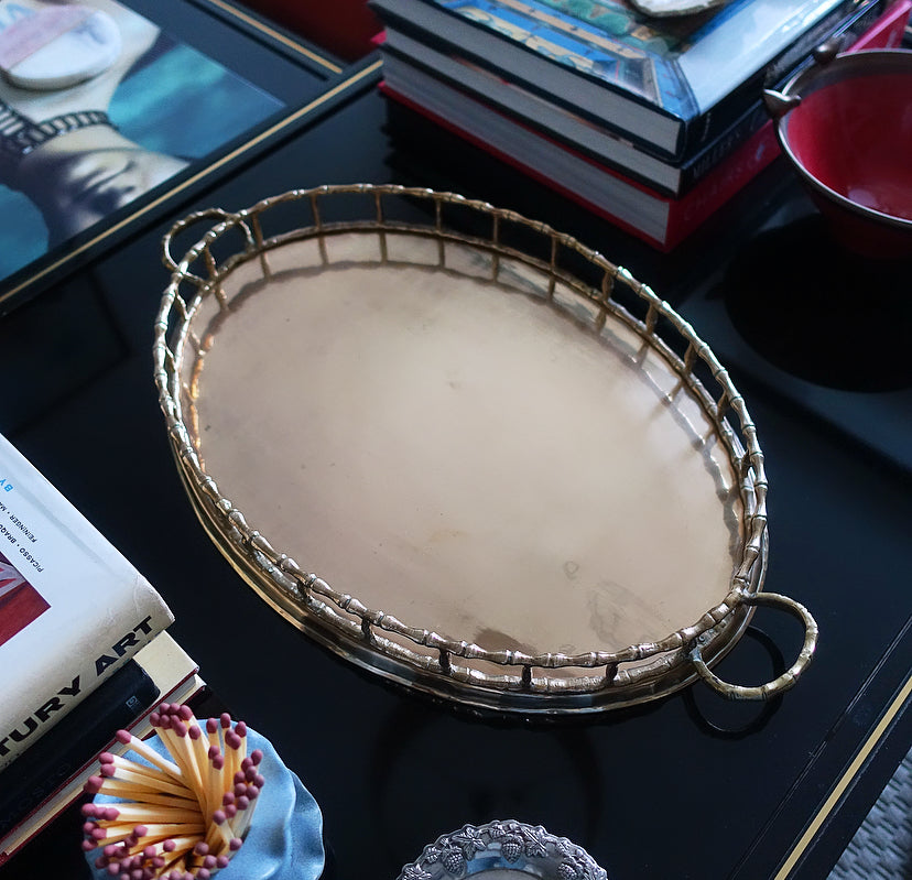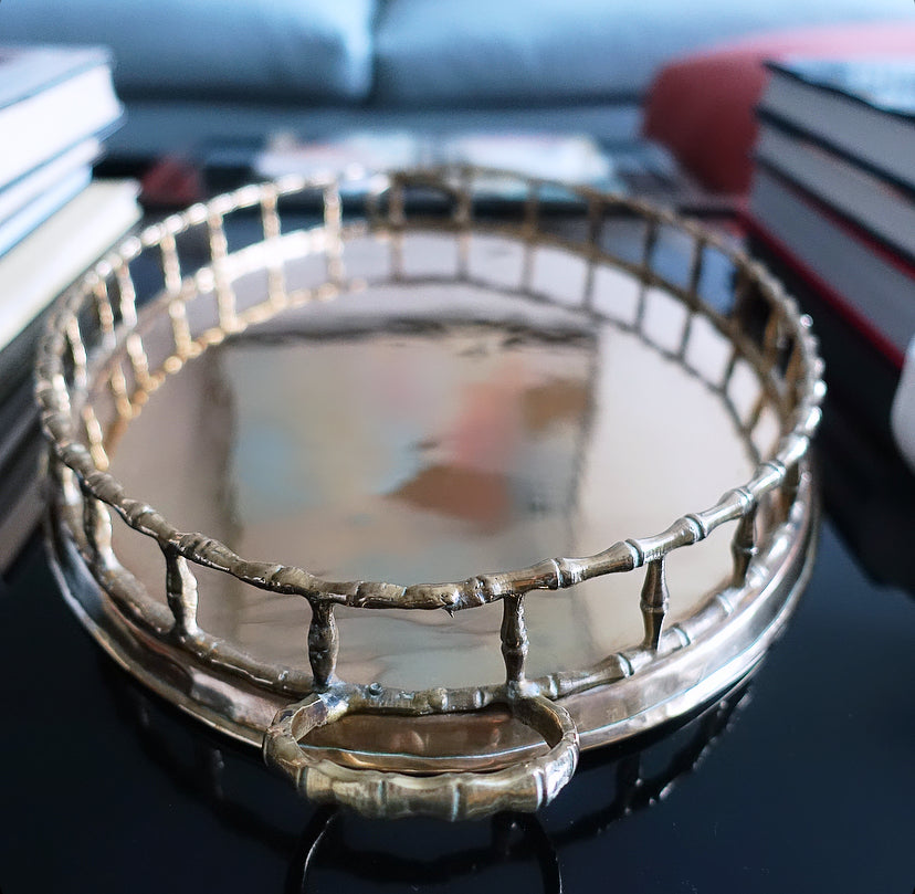 Vintage Hollywood Regency brass bamboo tray c.1970s