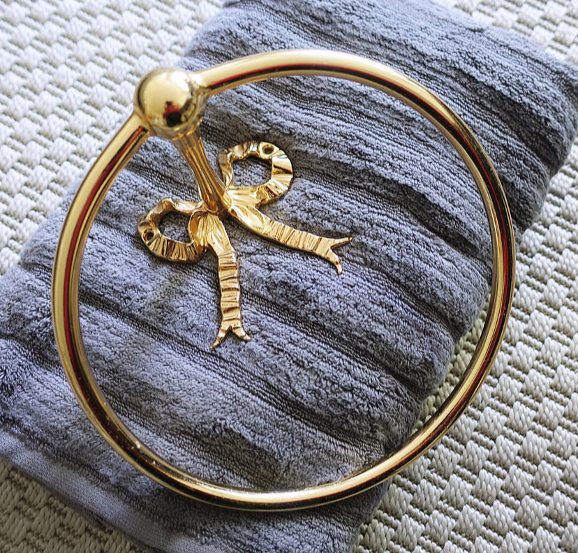 Hollywood Regency lacquered brass bow towel ring c.1980s, nice large size.