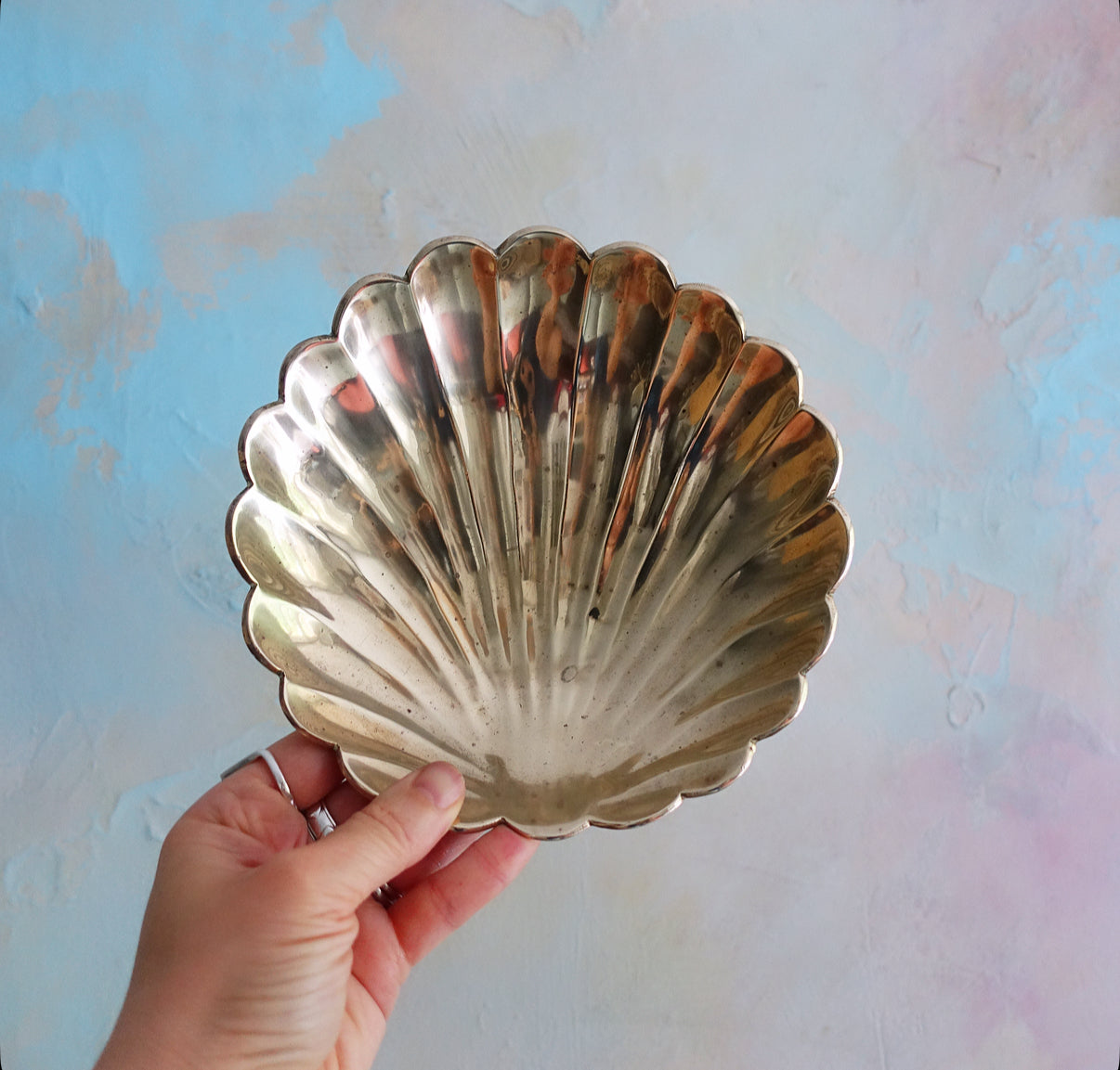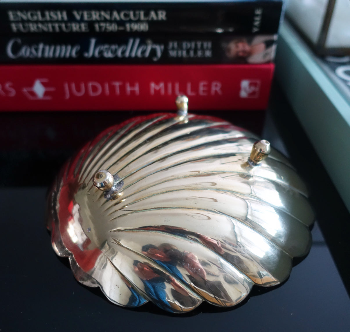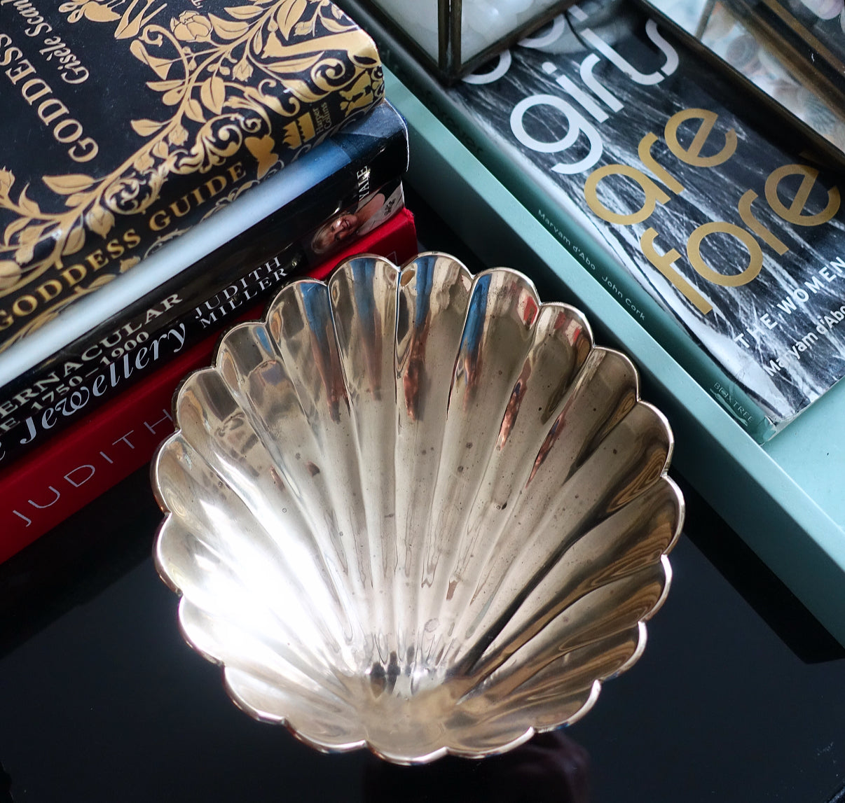 Vintage Hollywood Regency brass scallop shell trinket dish, c.1970s/80s