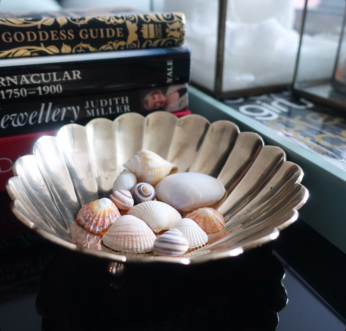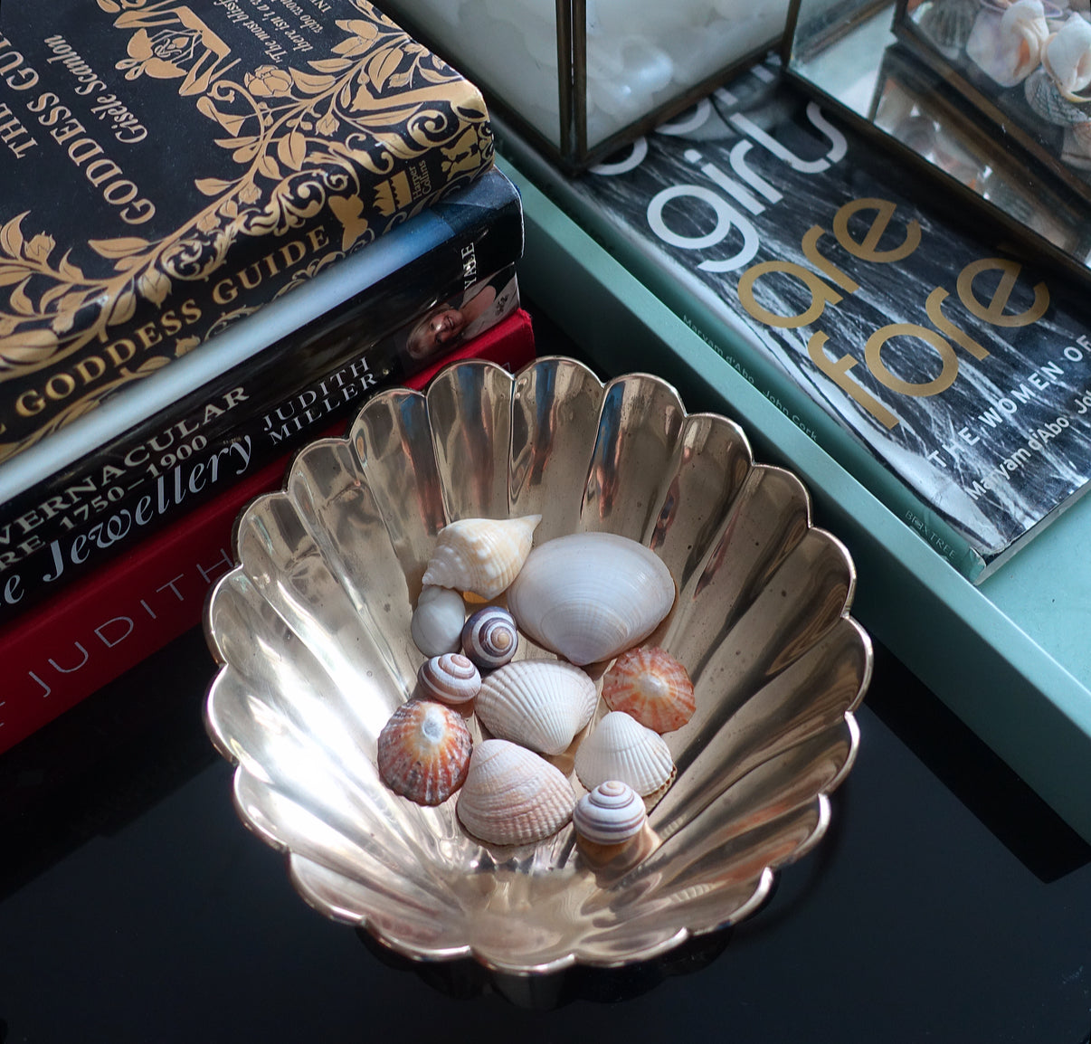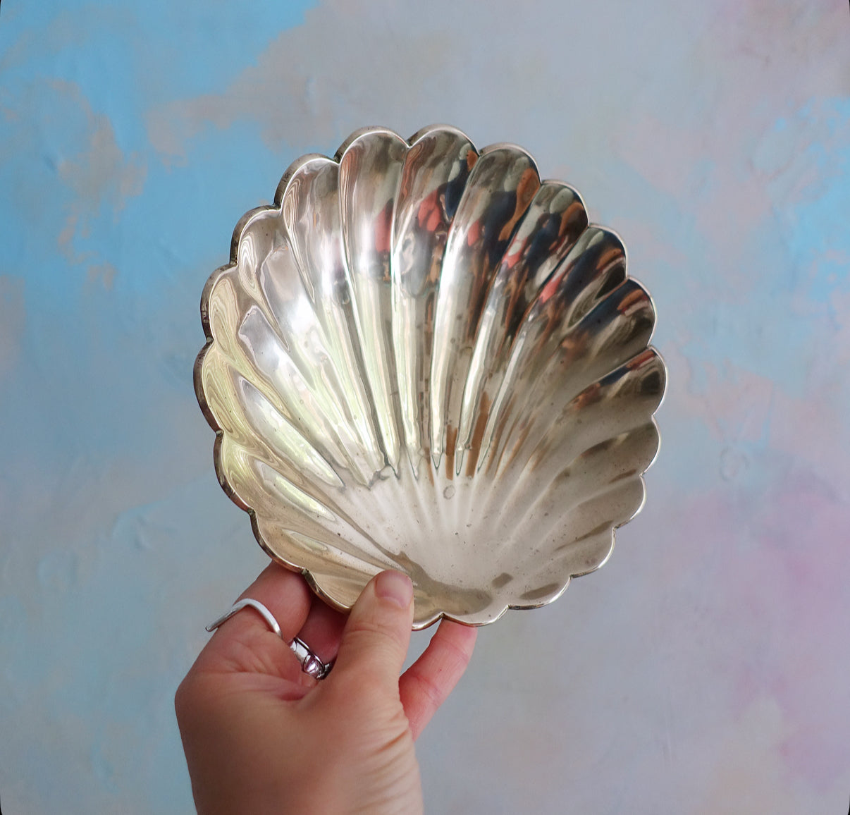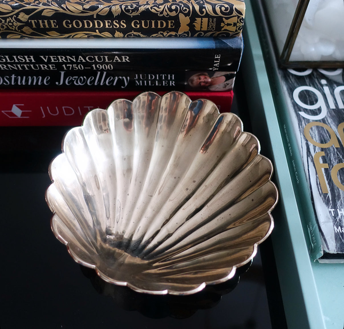Vintage Hollywood Regency brass scallop shell trinket dish, c.1970s/80s