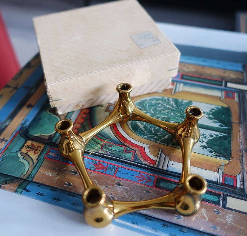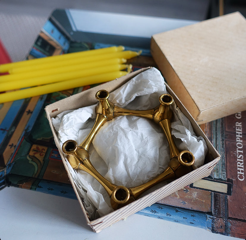 Small Mid-Century brass ring candle holder for taper candles designed by Jens Quistgaard for Dansk Designs Denmark, c.1960s