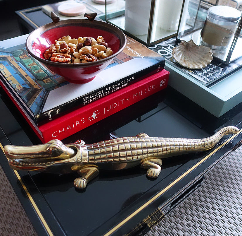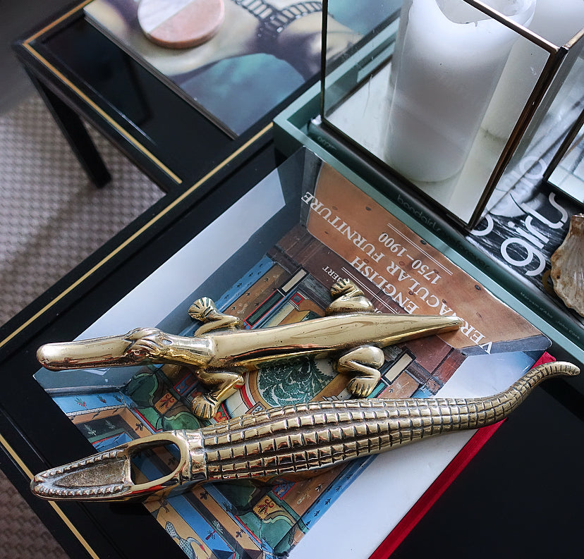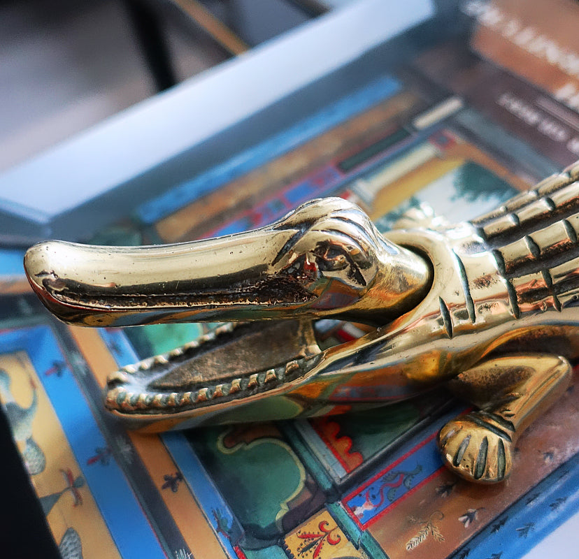 Two piece nutcracker, lift the tail, place the nut in the crocodile’s mouth and push the tail downwards!
