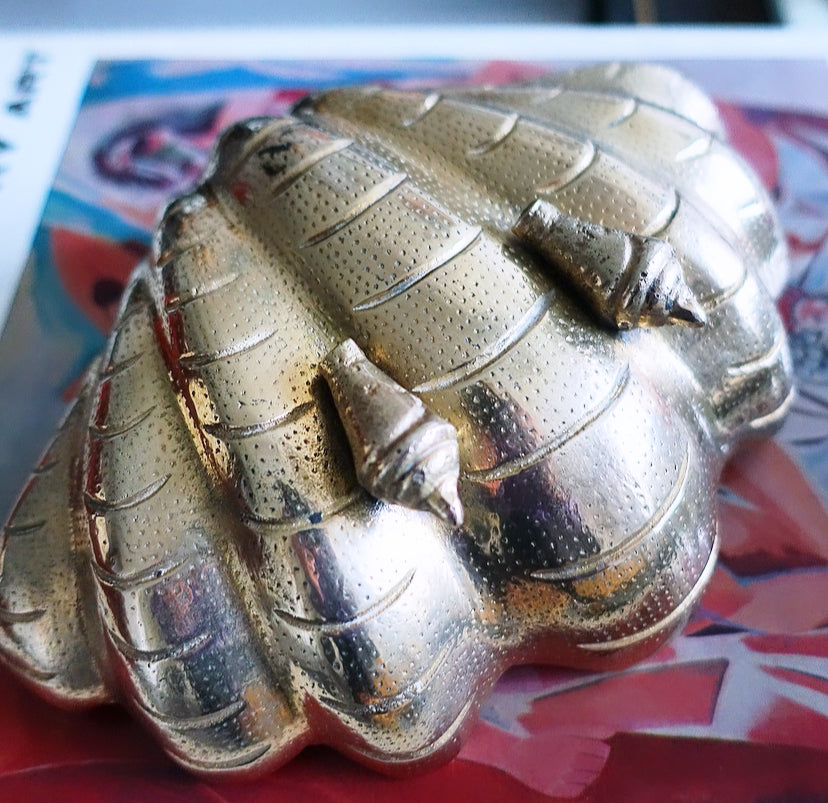 Superb large Hollywood Regency brass shell dish, c.1980s. Wonderfully detailed with little conch shell feet on the underside, nice weighty piece too.