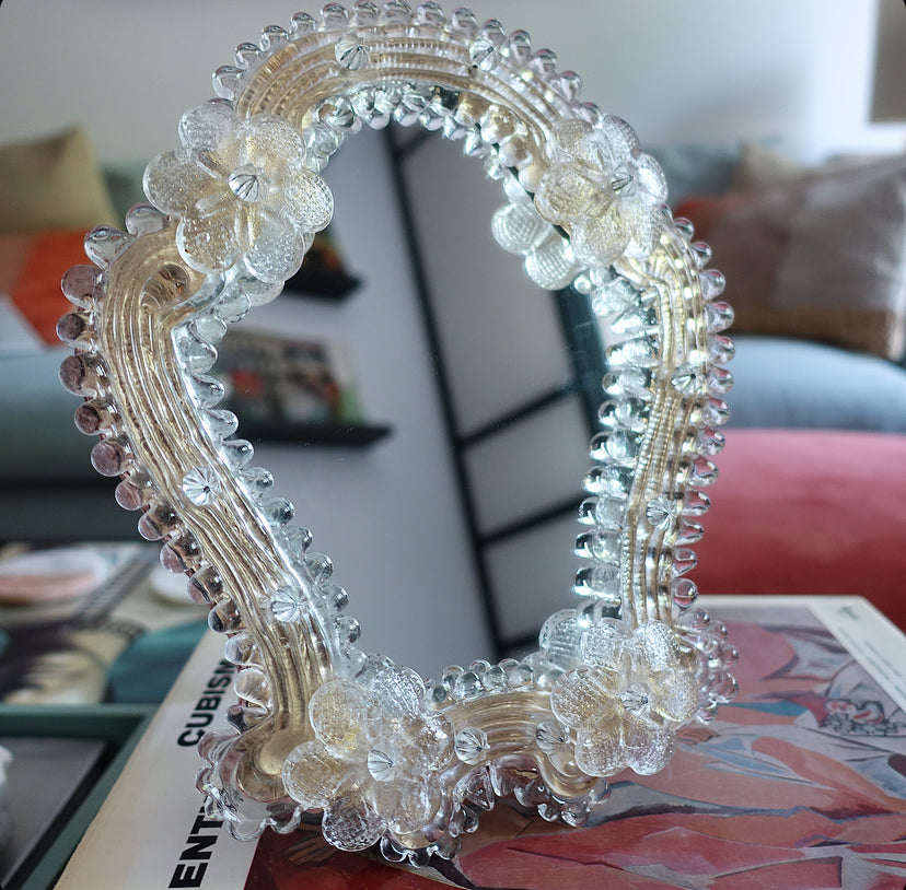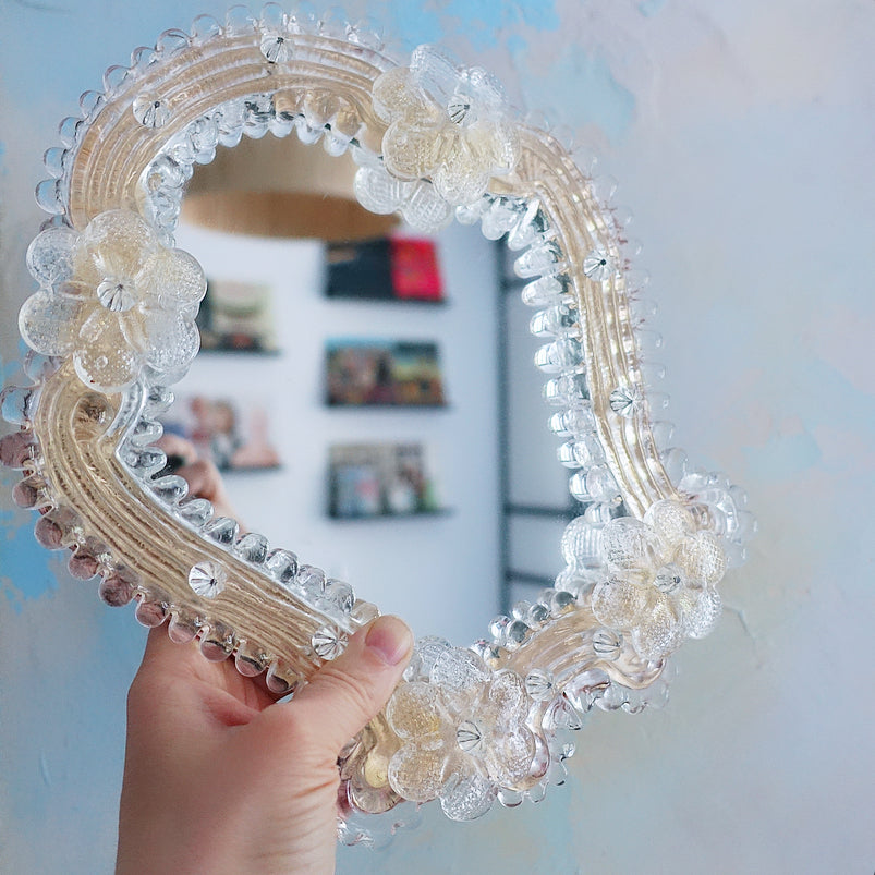Pretty Mid-Century Murano glass flower mirror, c.1950s/1960s
