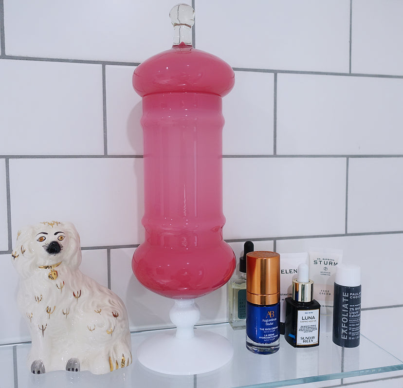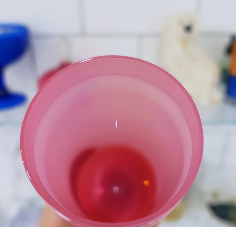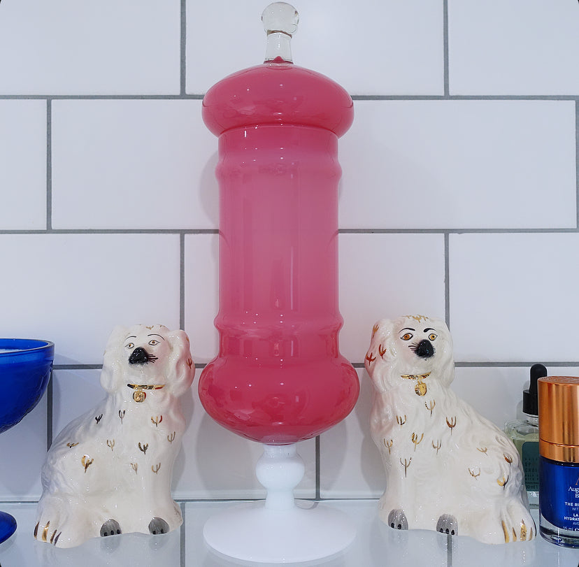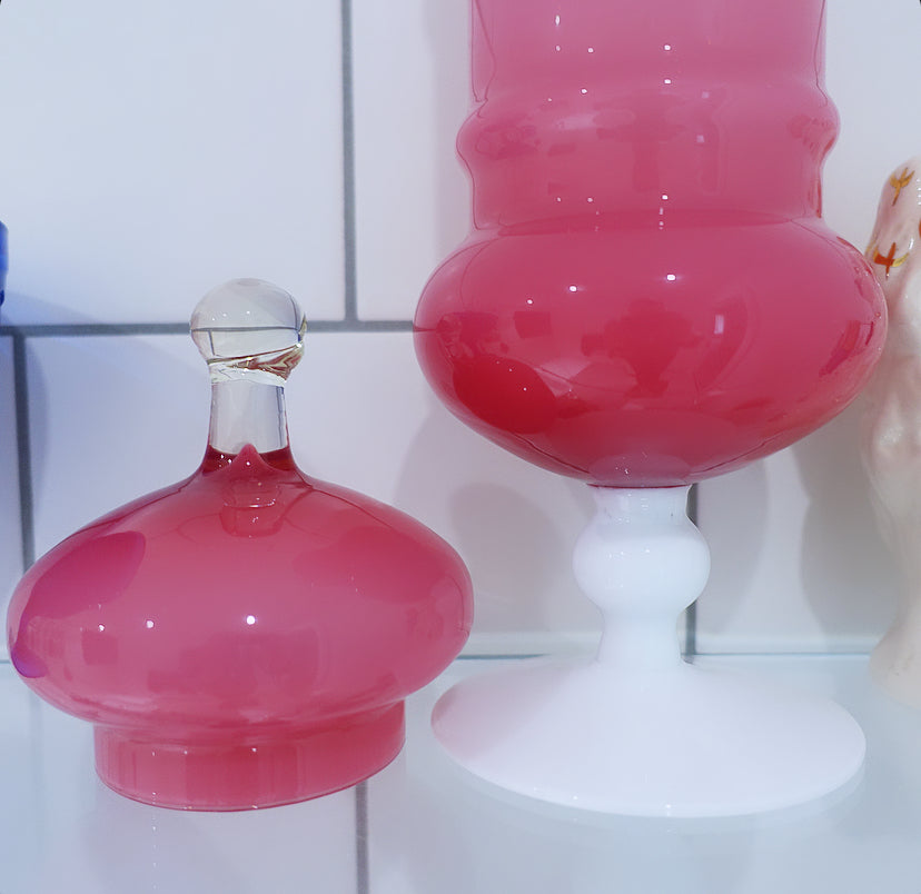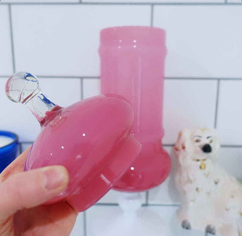 Large French Mid-Century pink opaline glass vanity jar, c.1960s
