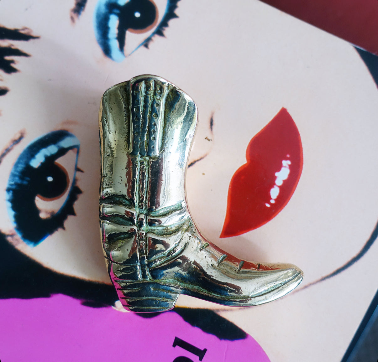 Sweet vintage miniature brass cowboy boot, c.1970s/80s