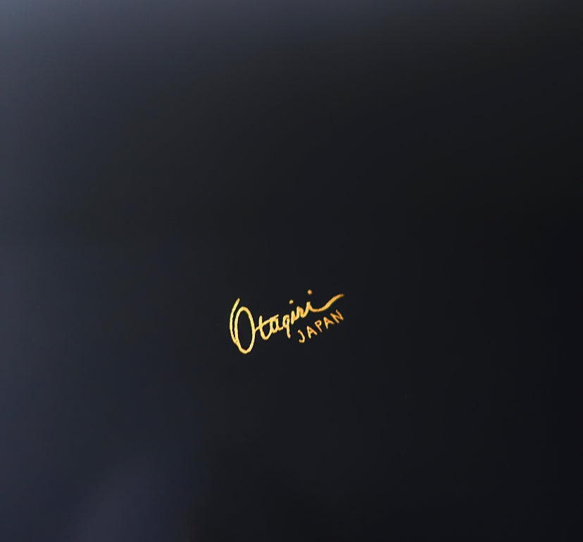 Beautiful shell design black & gold lacquerware tray with handles by Otagiri Japan c.1980s