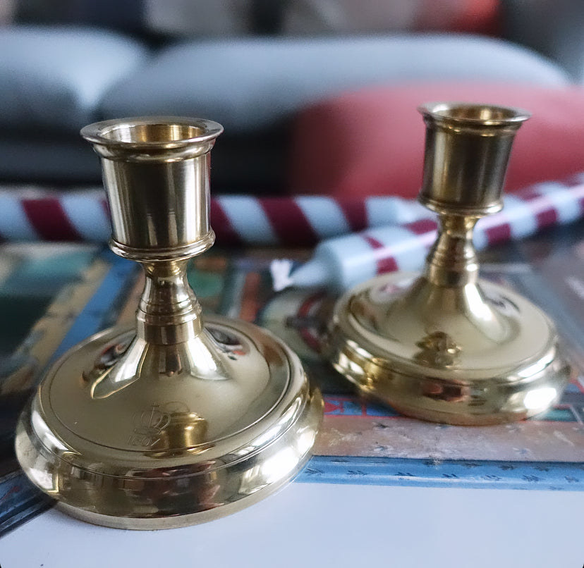 Beautiful pair of vintage Swedish brass ‘Princess’ candle holders by Skultuna Sweden, c.1980s.