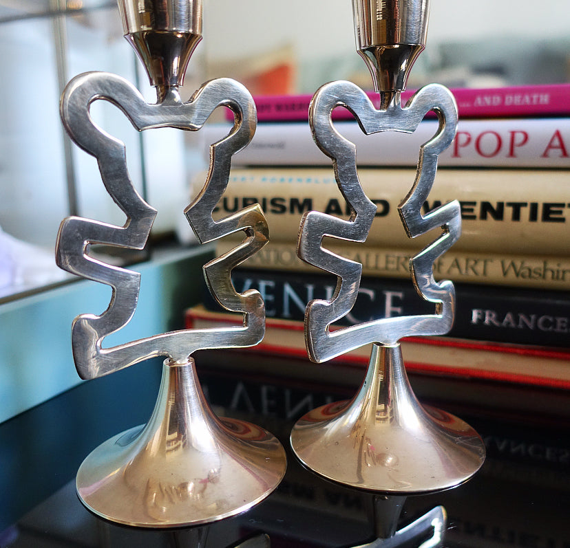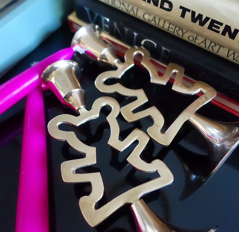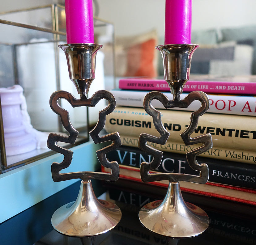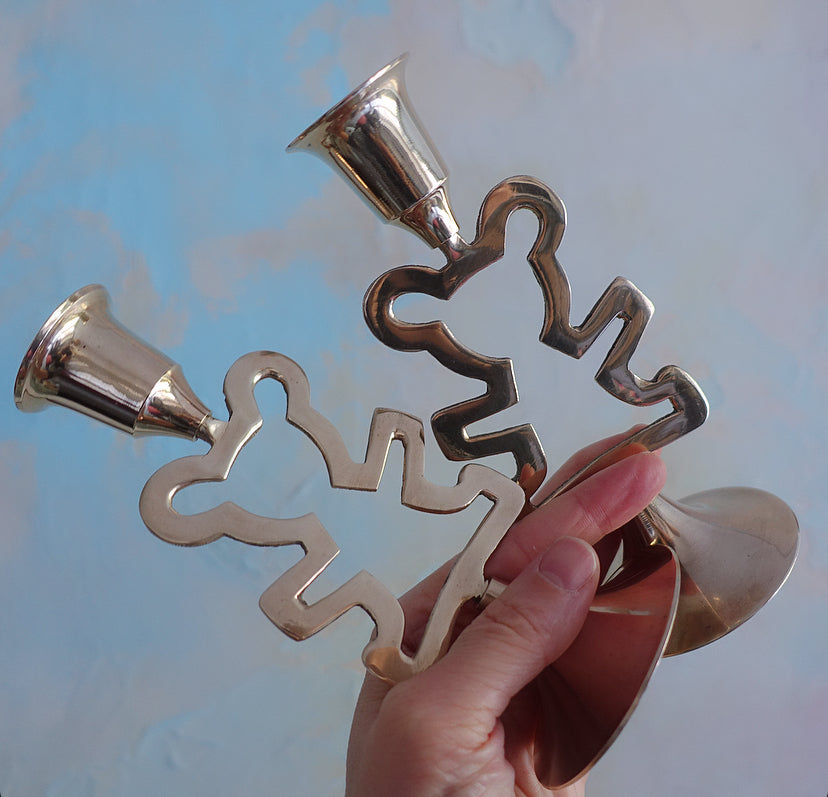 Cute pair of vintage brass teddy bear candlesticks, c.1980s