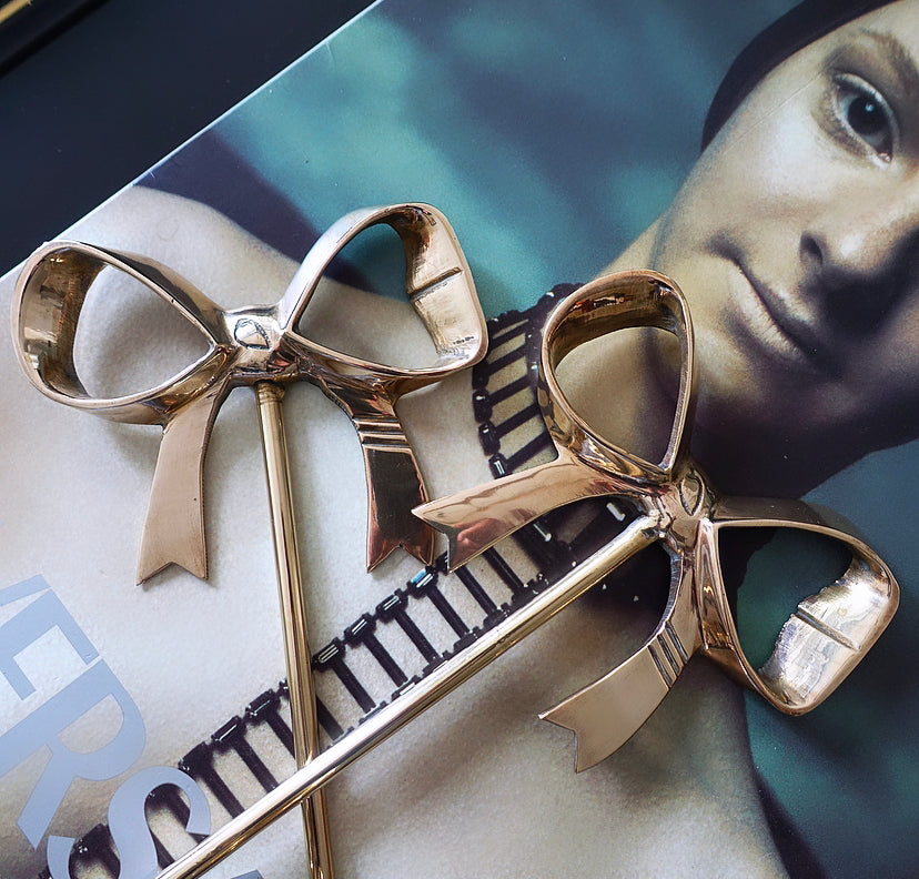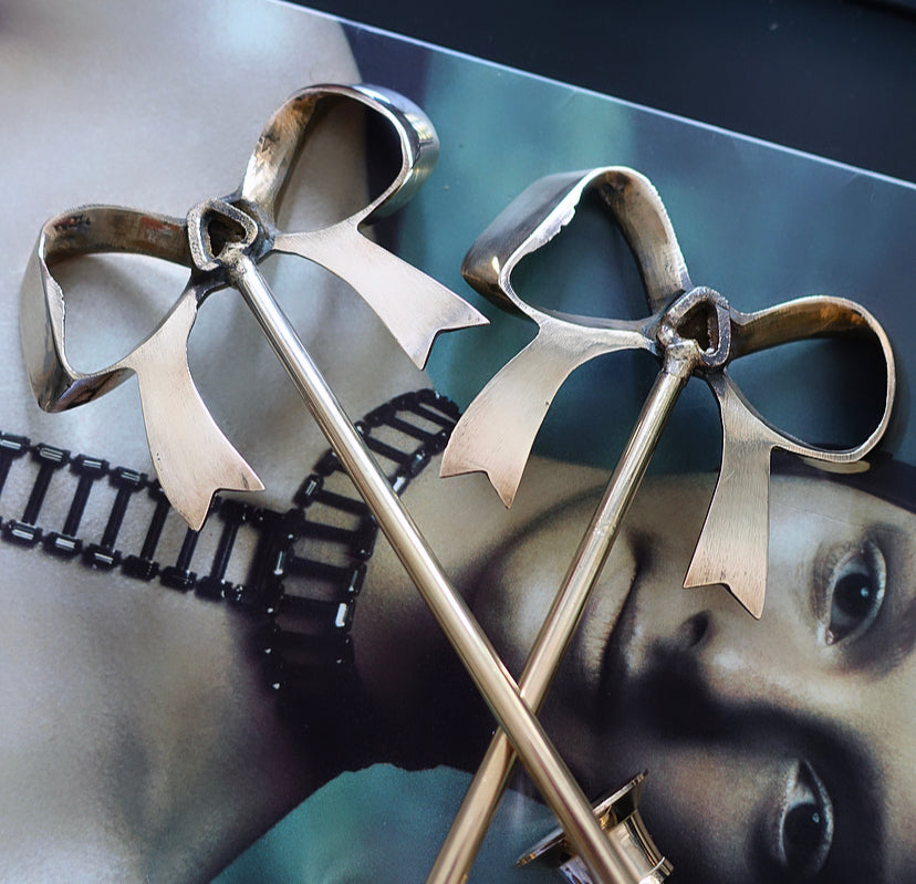 Pair of Hollywood Regency Brass Bow Candle Sconces