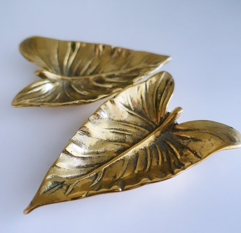 Pair of Hollywood Regency brass calla Lily leaf dishes