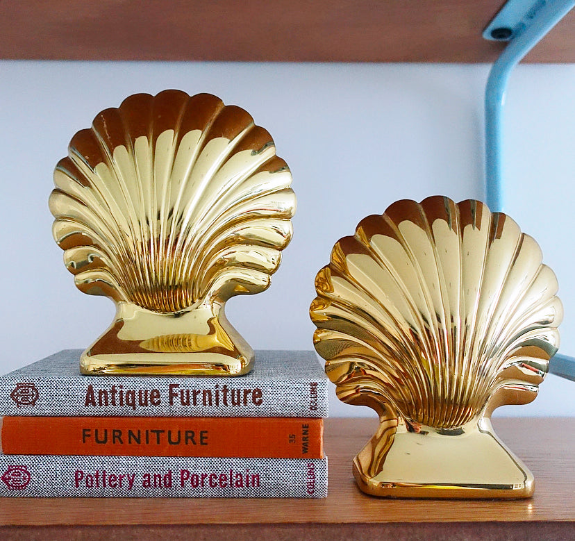 Fantastic pair of vintage lacquered brass scallop shell bookends by Baldwin USA, produced for The Henry Ford Museum, c.1970s/80s