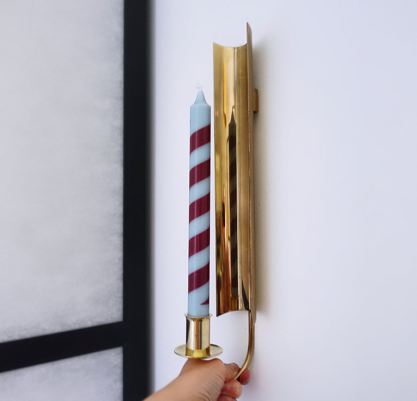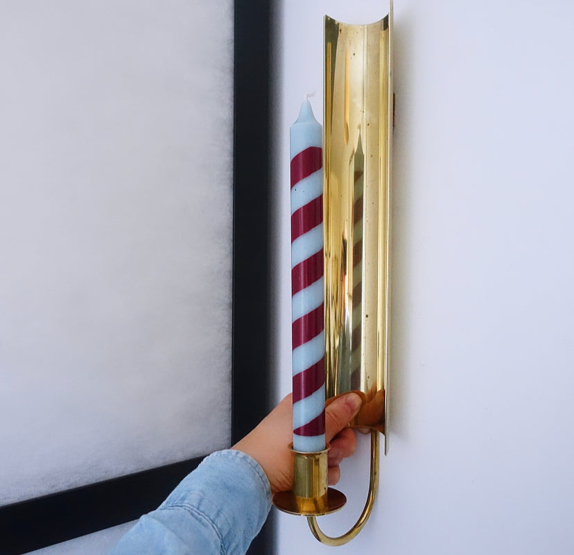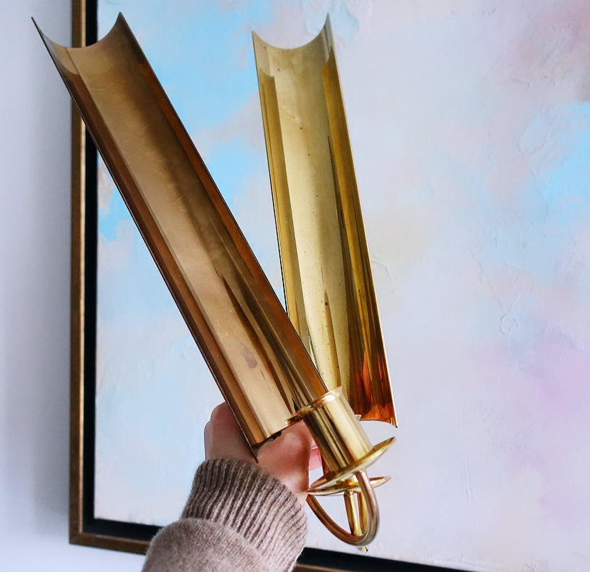 Pair of brass ‘Reflex’ candle sconces designed by Pierre Forssell in the 1960s, produced by Skultuna Sweden in the 1990s.