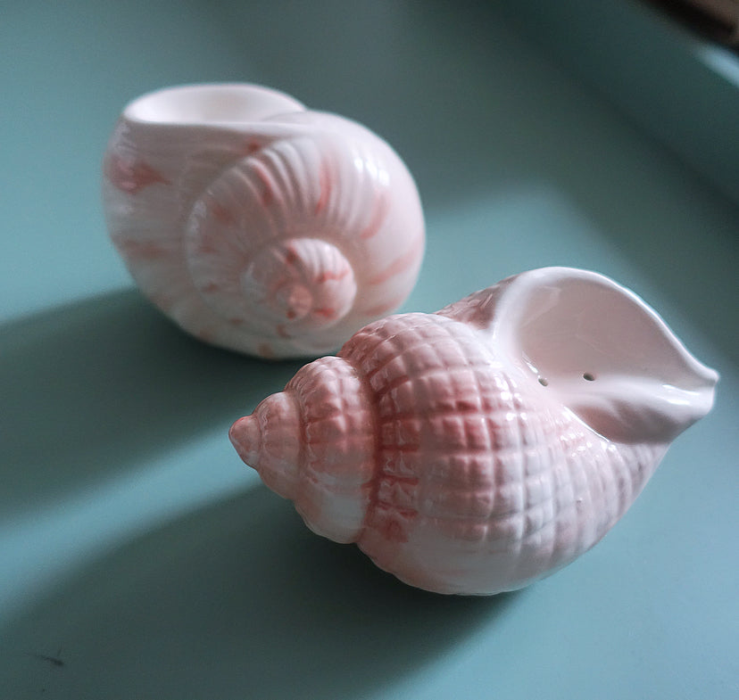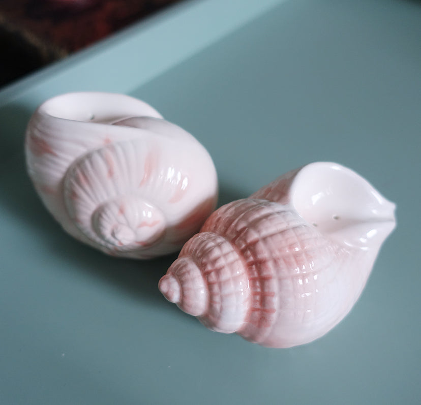 Cute pair of vintage ceramic shell salt & pepper shakers from the ‘beachcomber’ range by Otagiri Japan, c.1980s