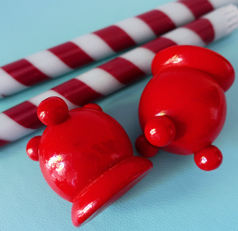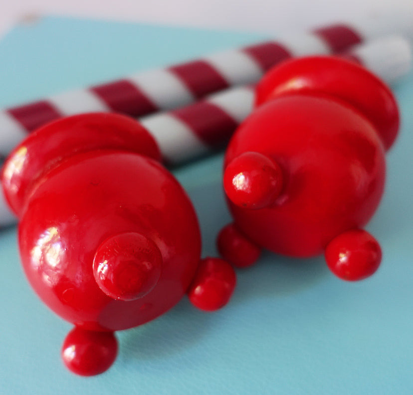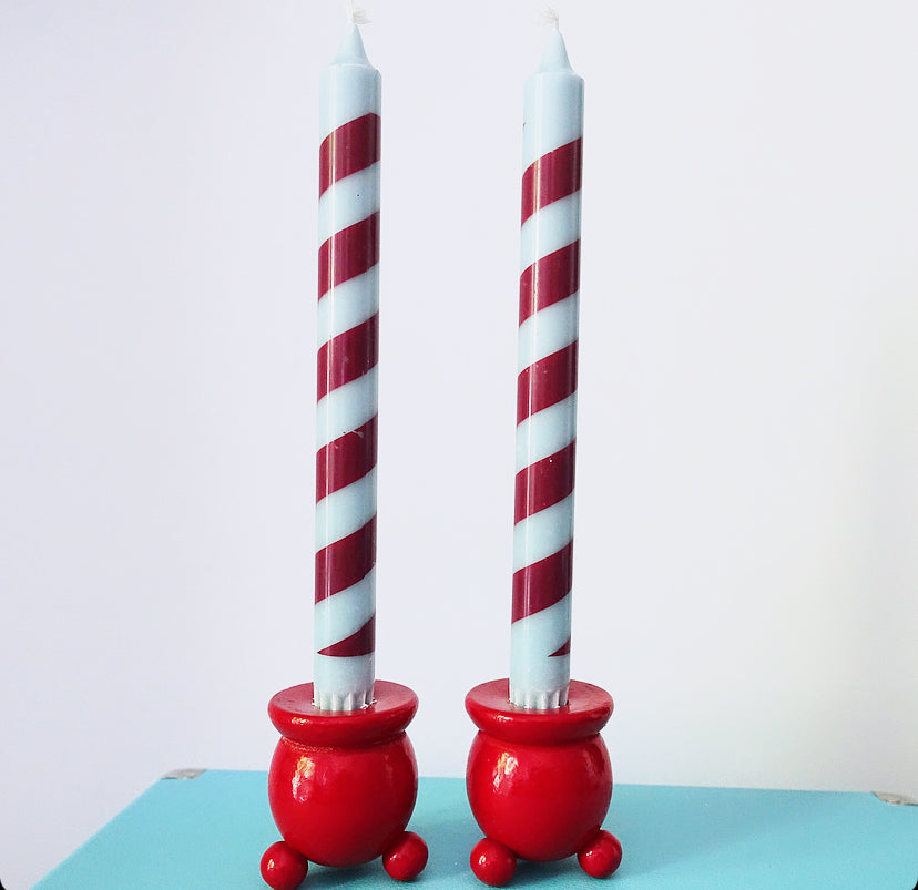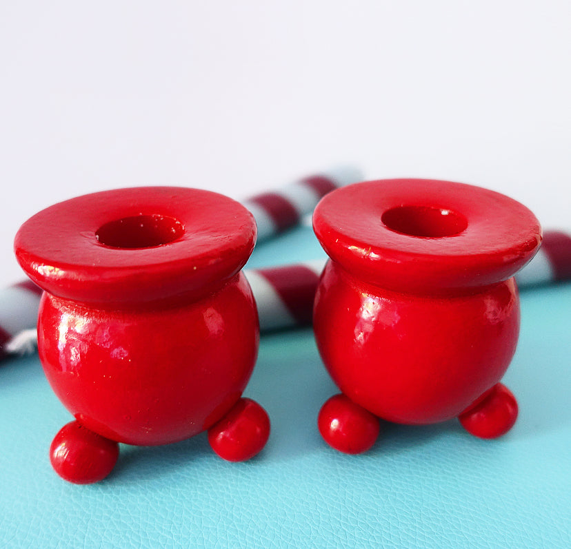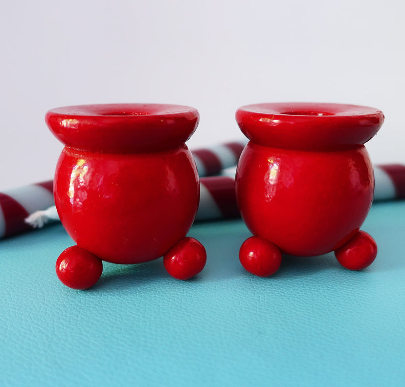 Cute pair of vintage Swedish wooden folk art candle holders with ball feet, c.1970s
