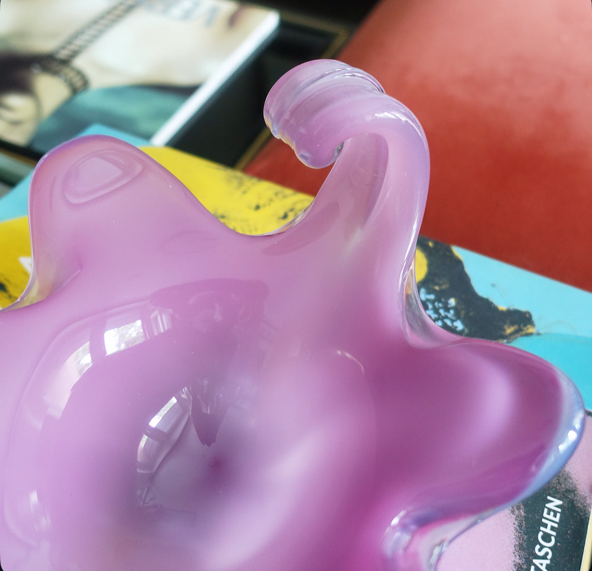 Vintage sculptural pink opalescent art glass bowl, c.1960s