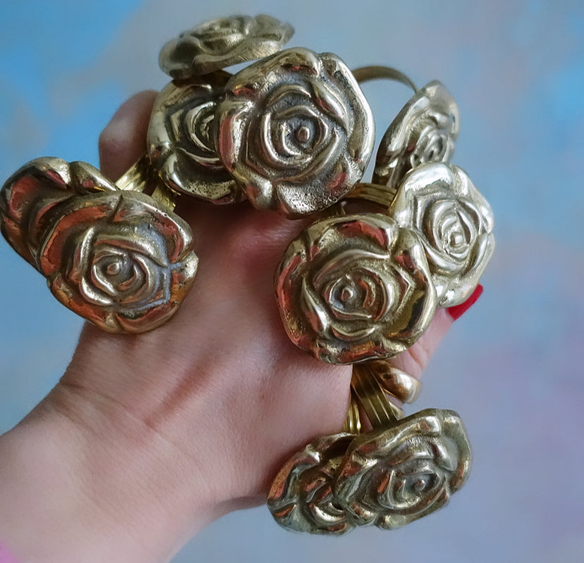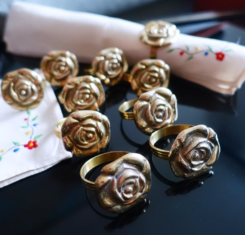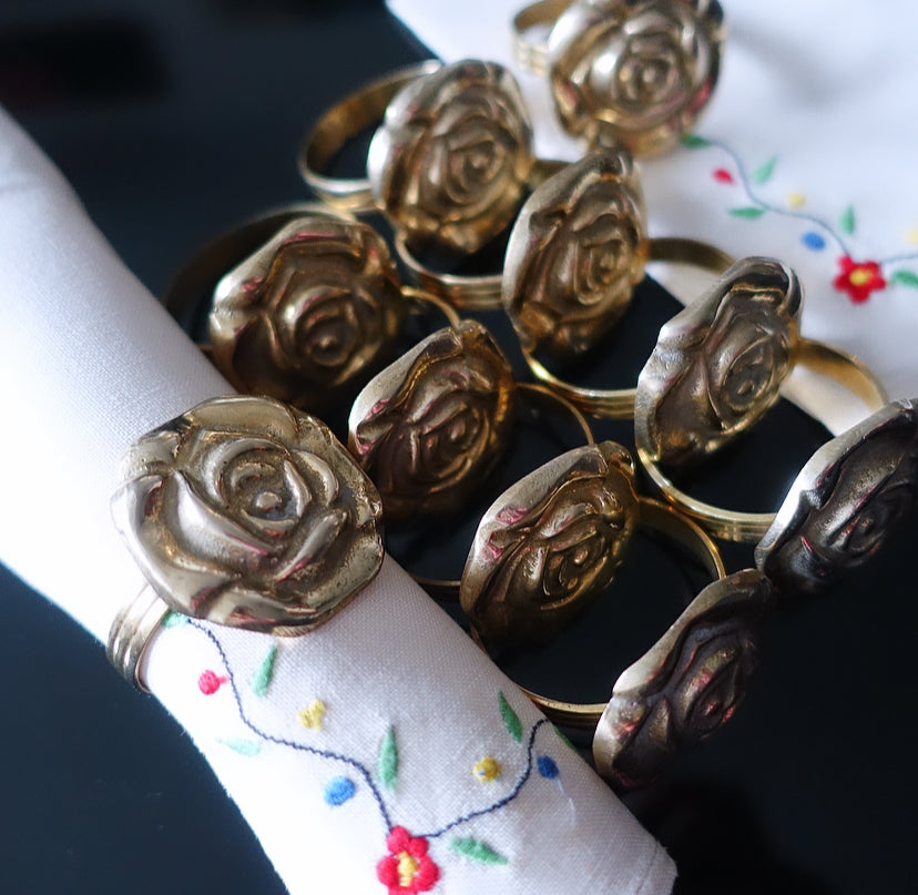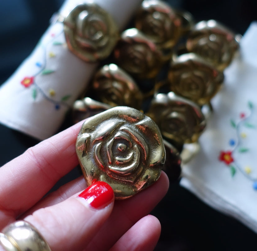 Set of 10 brass rose napkin rings