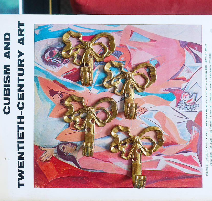 Pretty set of four small lacquered brass wall hooks, c.1980s/90s