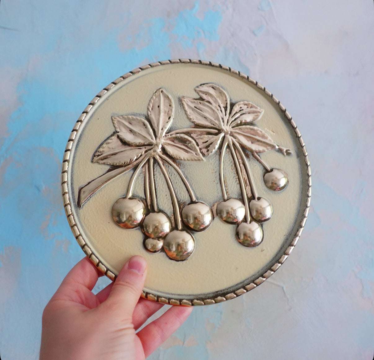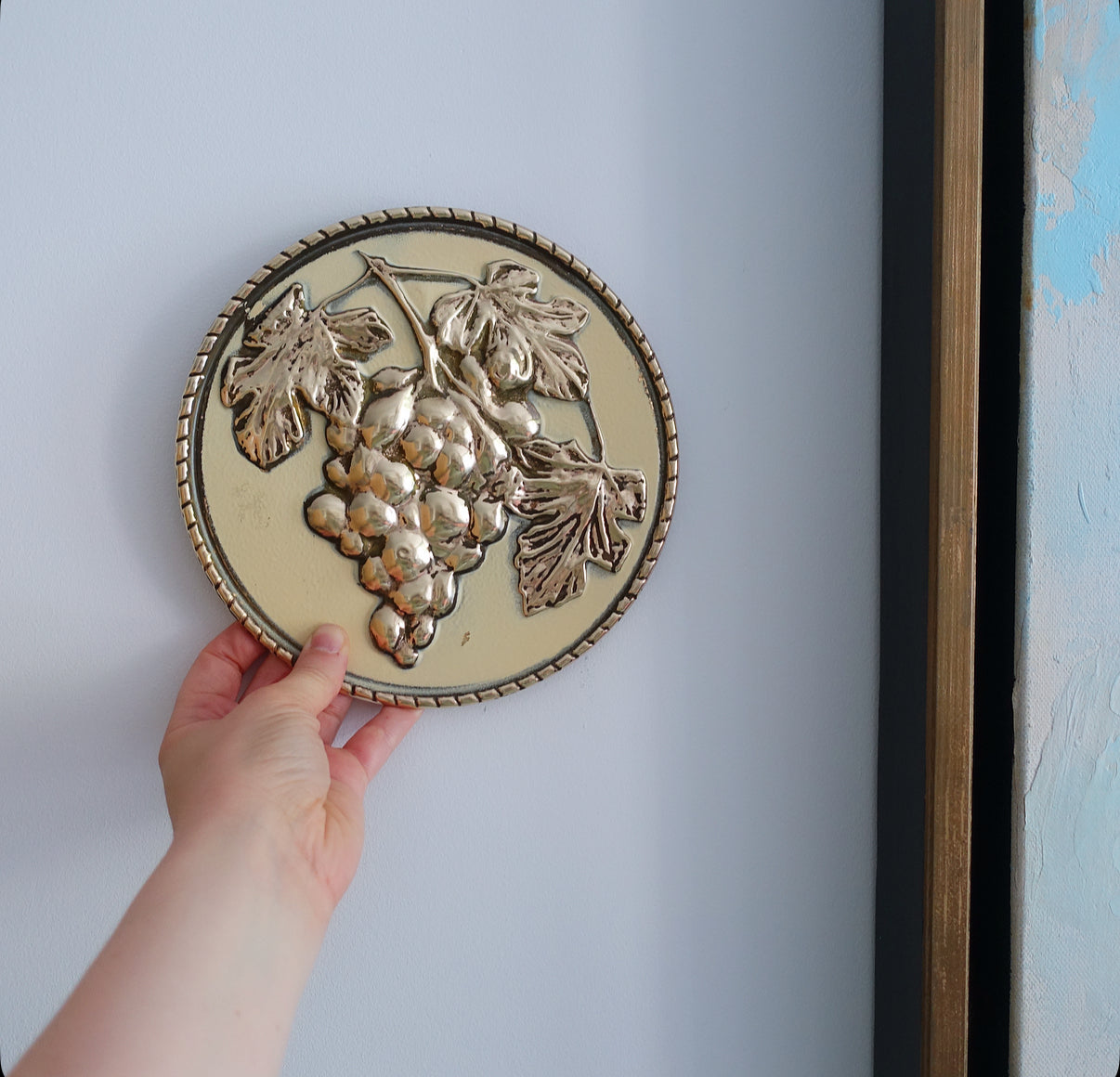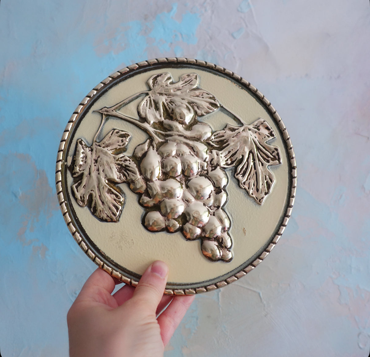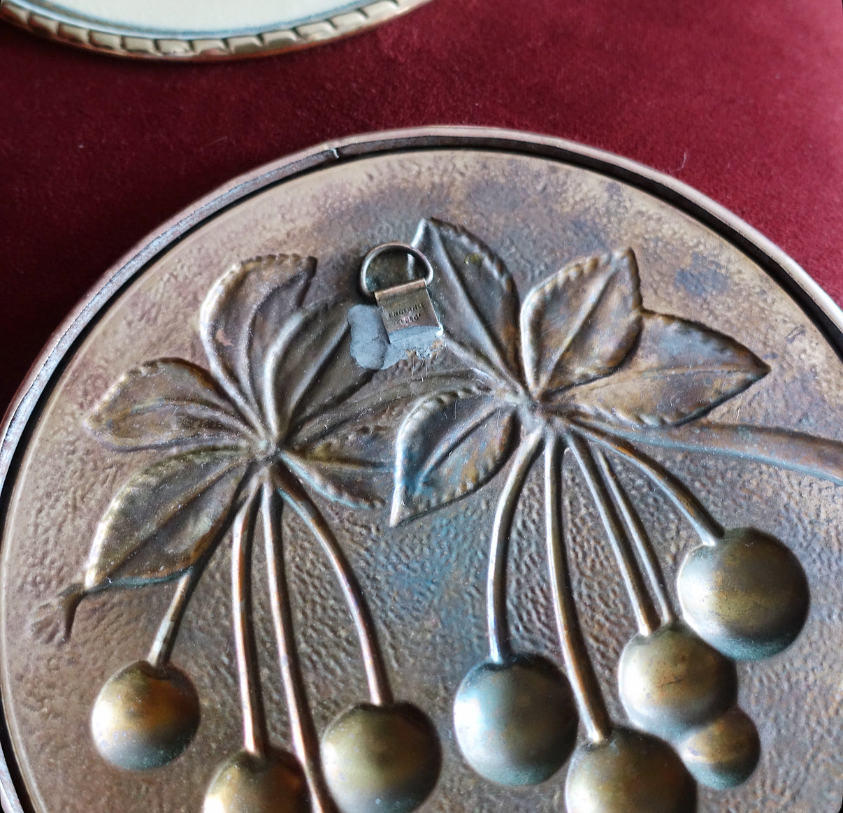 Set of four Mid-Century embossed brass fruit wall plaques by Elpec England, c.1960s