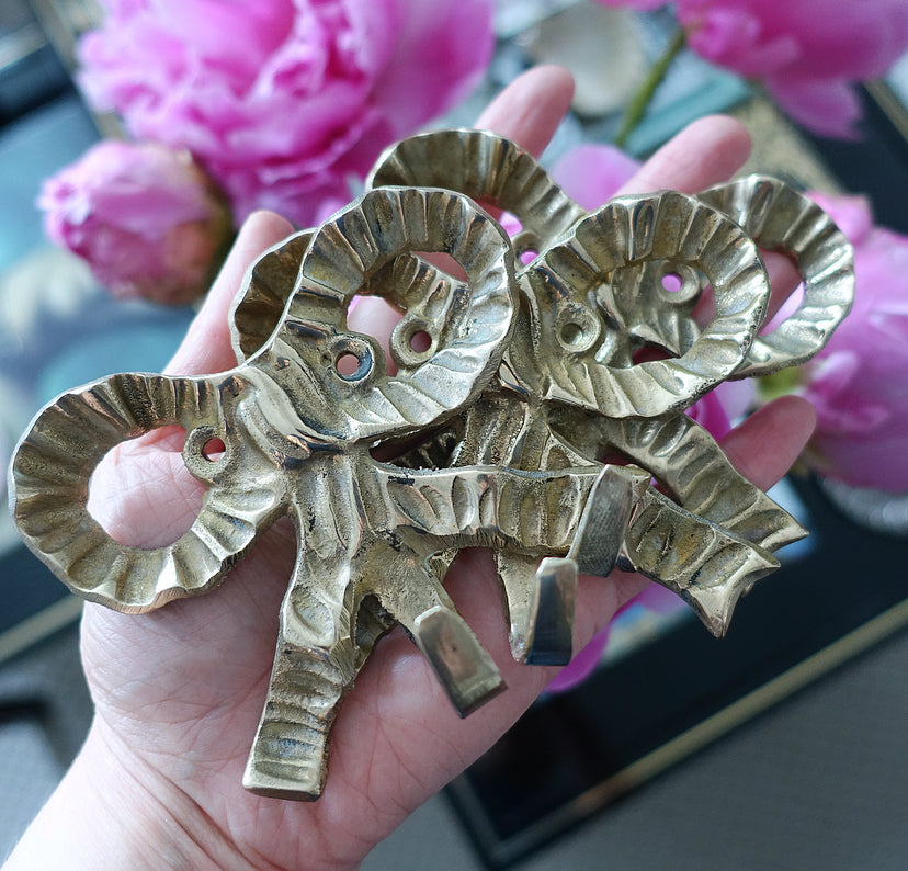 Pretty set of three vintage Hollywood Regency brass bow wall hooks, c.1980s
