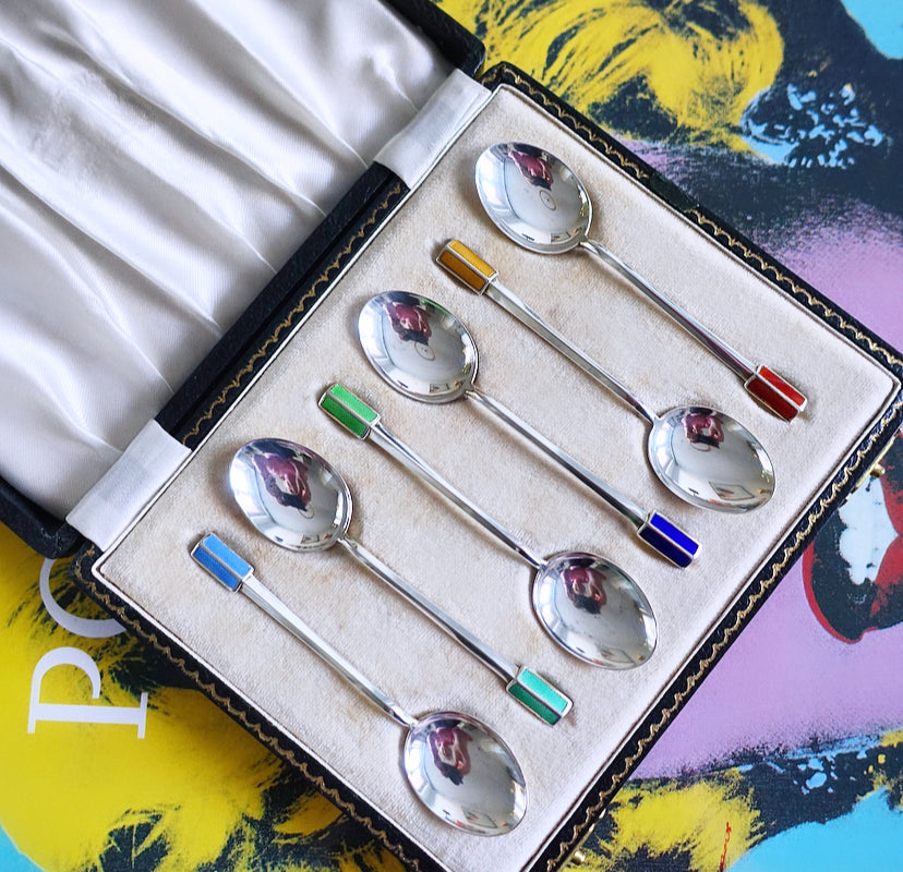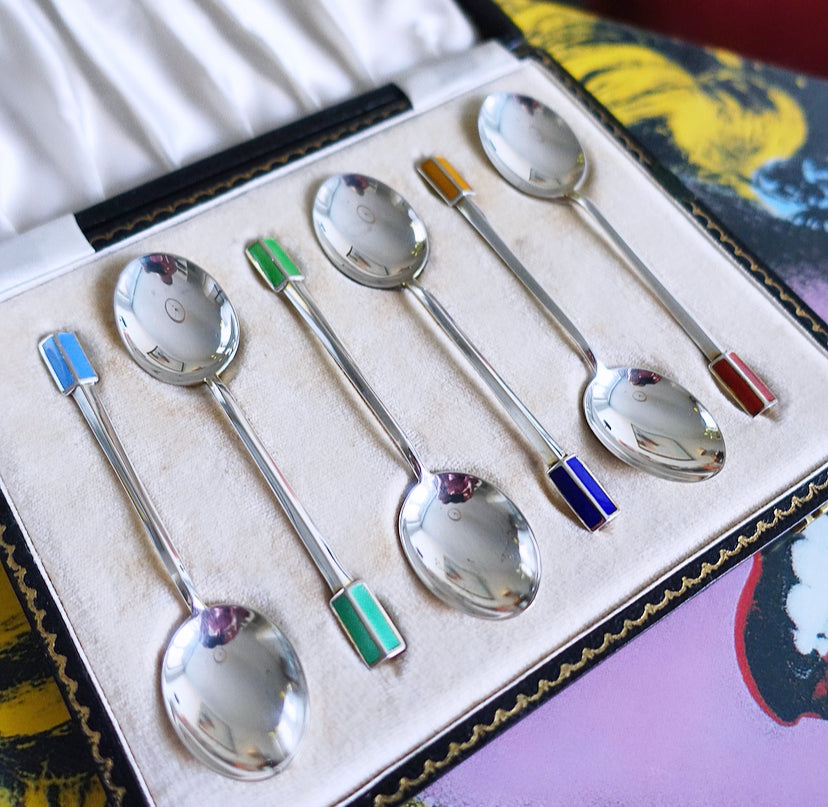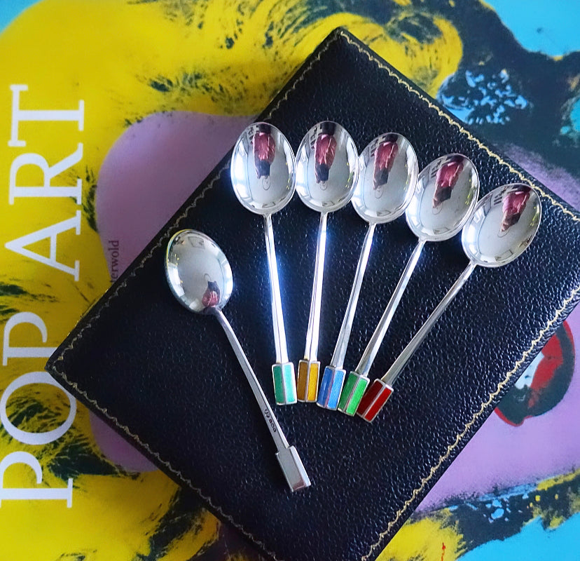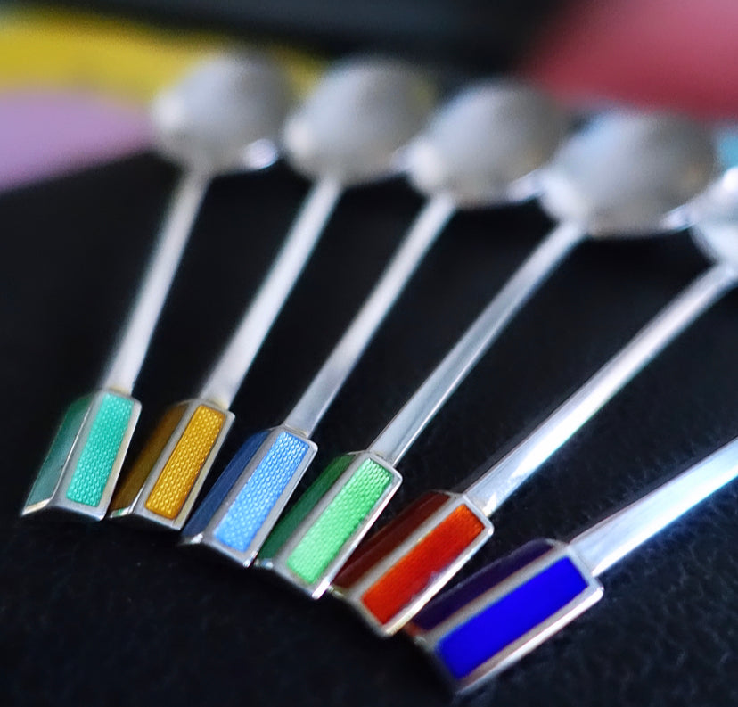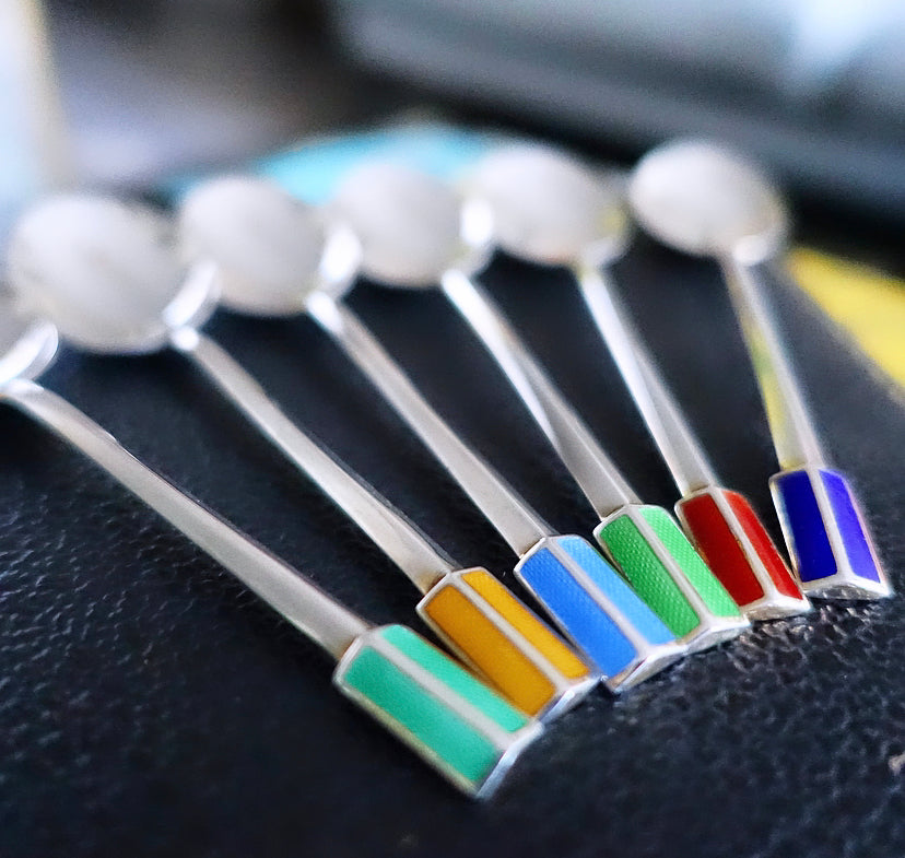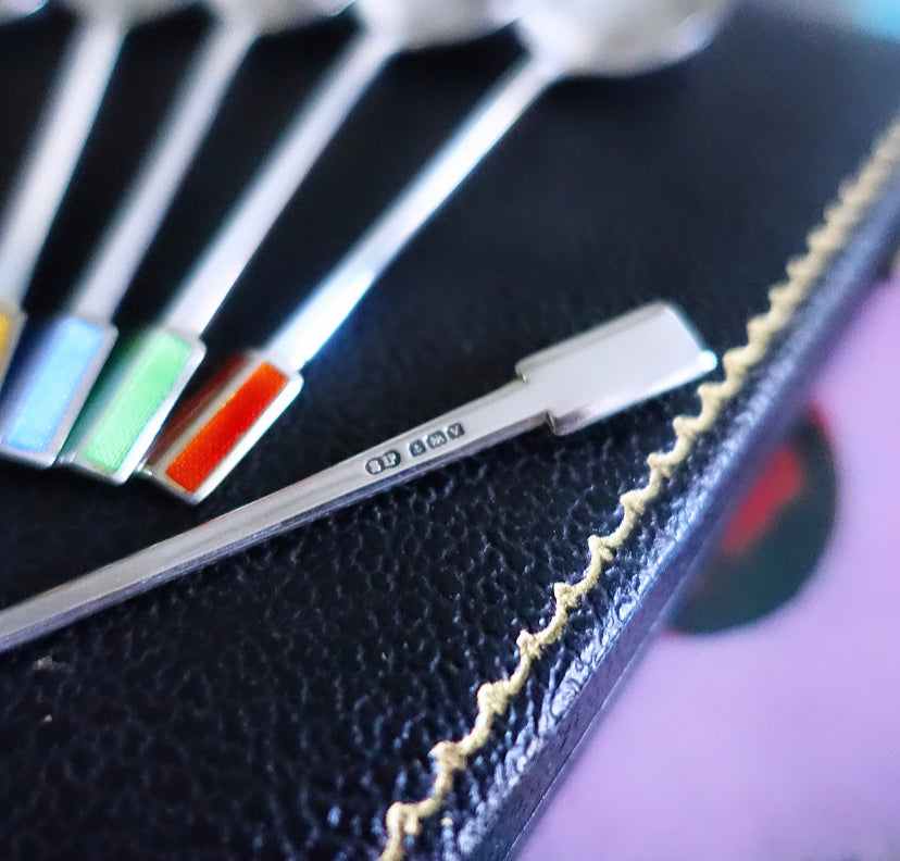 Silver Hallmarked & Rainbow Enamel Spoon Set